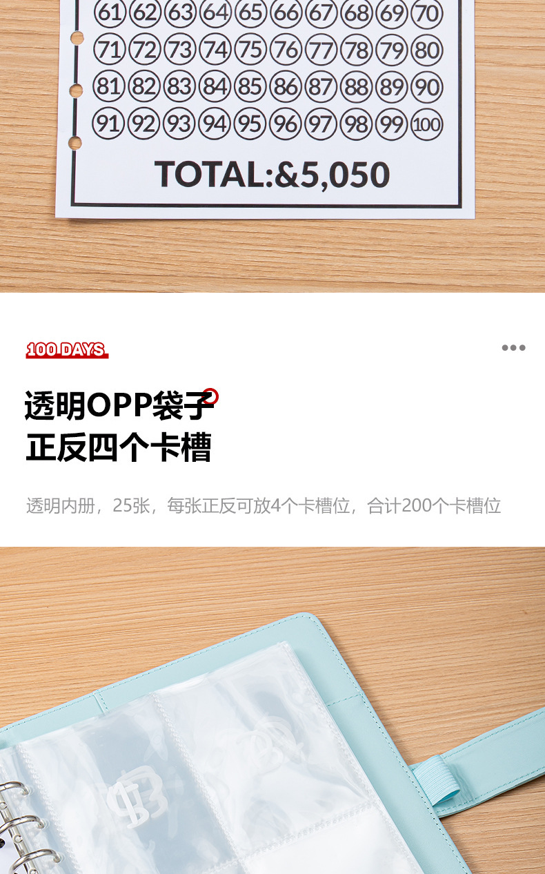 • A5 마카롱 블루 (4 팰리스 카드 필름 25 매 + 100 일짜리 카드 용지 1 매) 내부 페이지에 숫자가있는