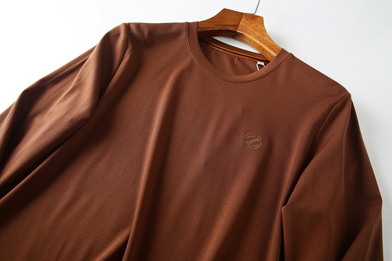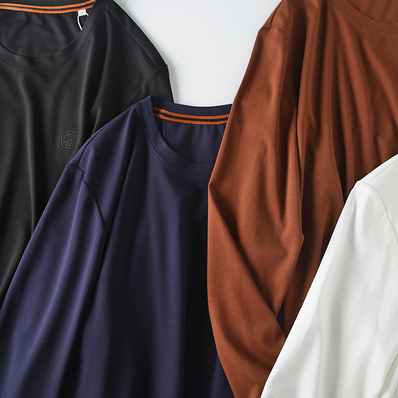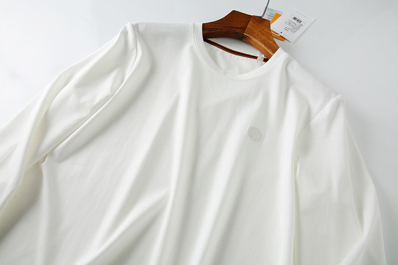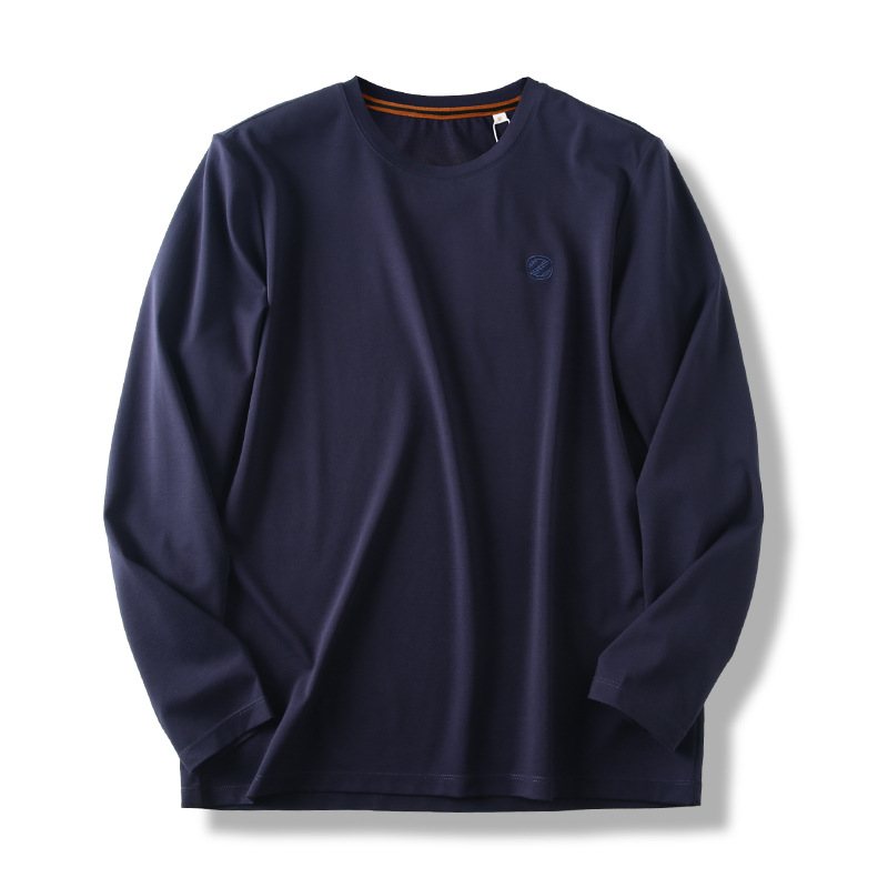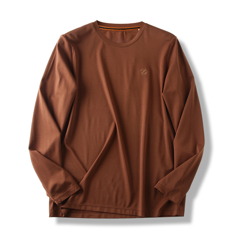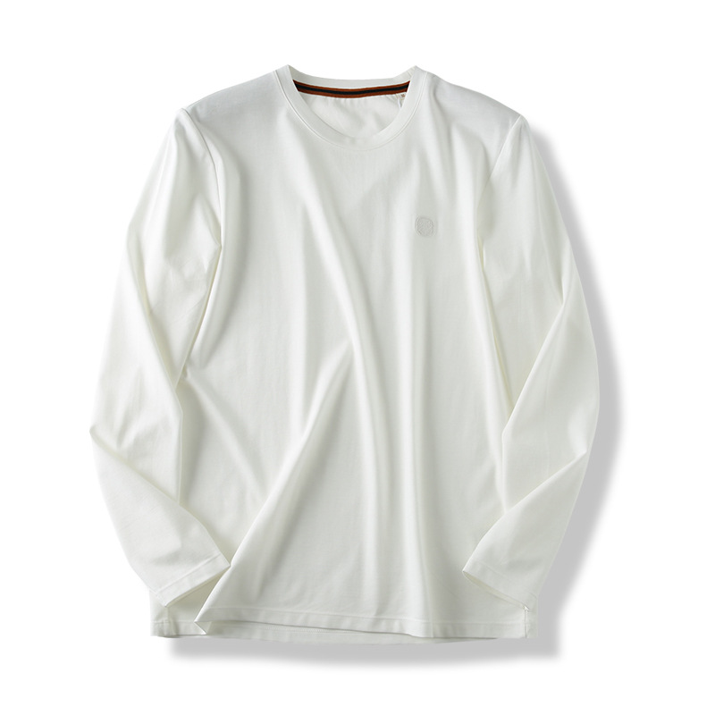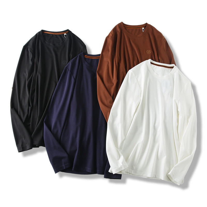 이탈리아의 가벼운 럭셔리! 액체 물 부드러운 면화! 봄과 가을 새로운 남자의 스트레치 실키 단색 긴 소매 티셔츠 베이스 셔츠스토어 가기