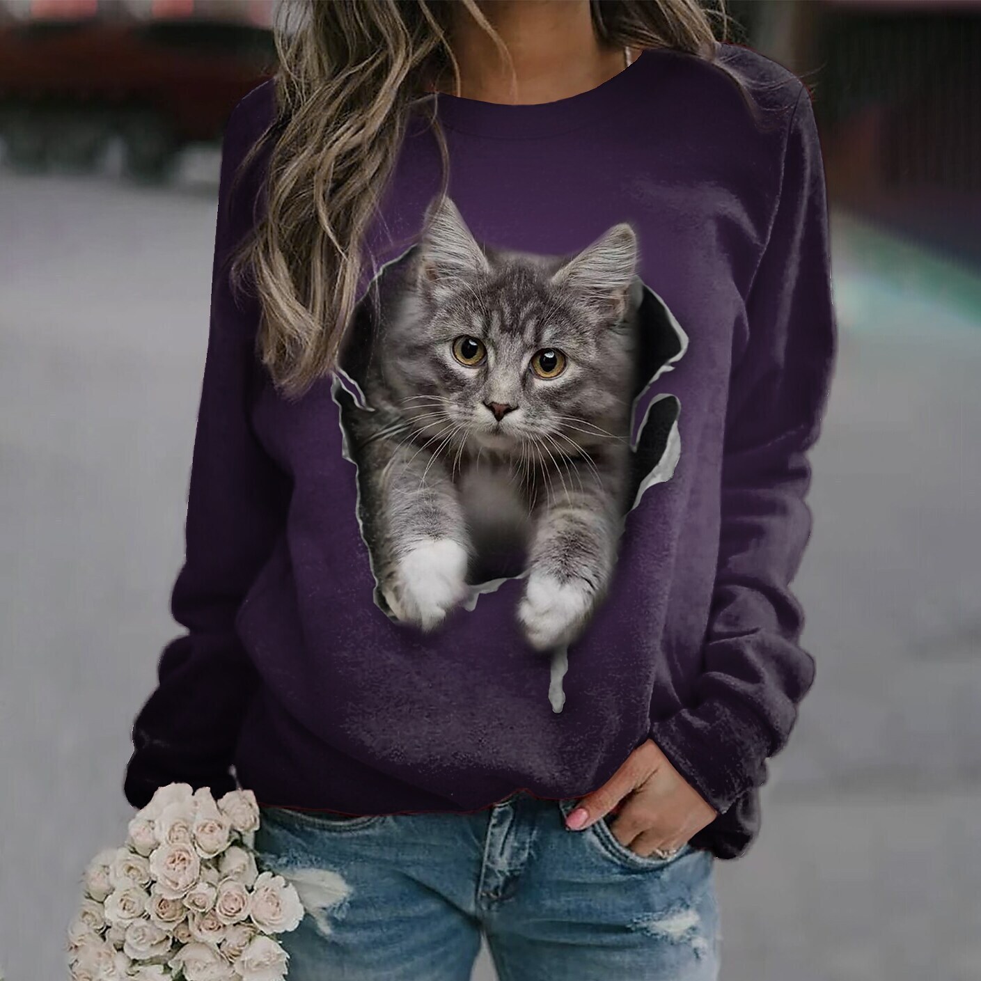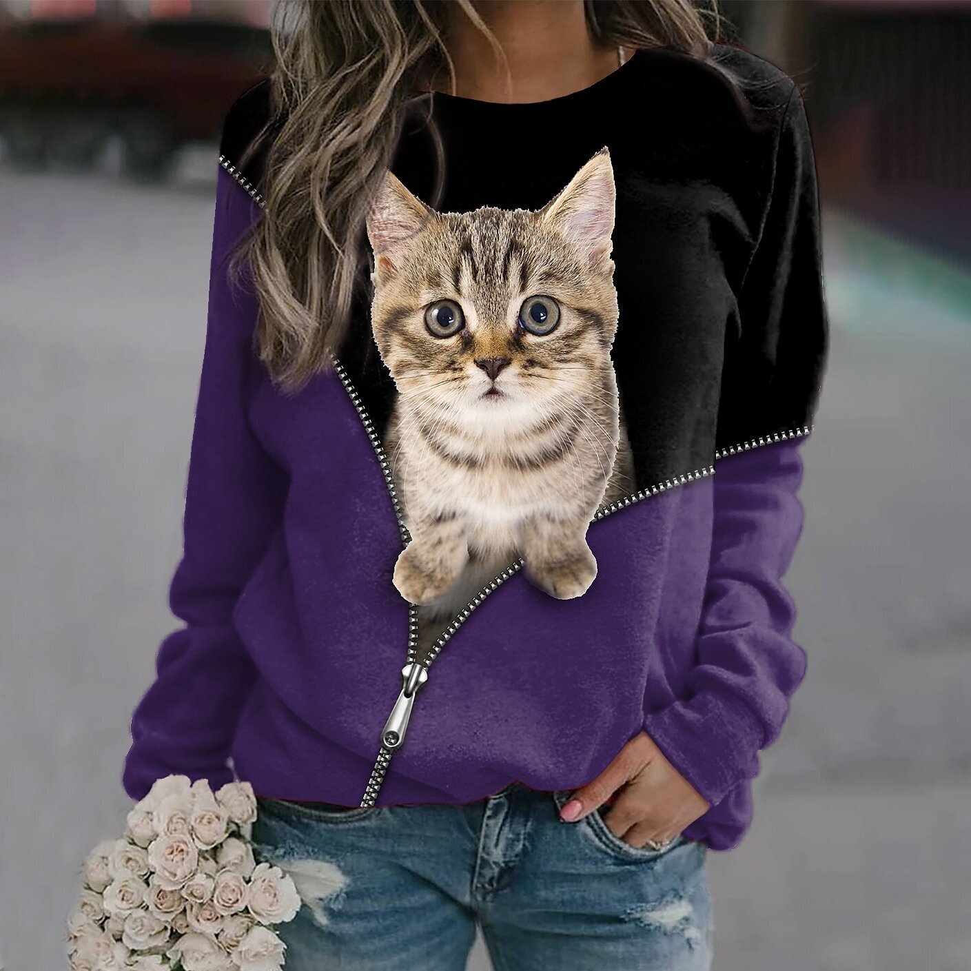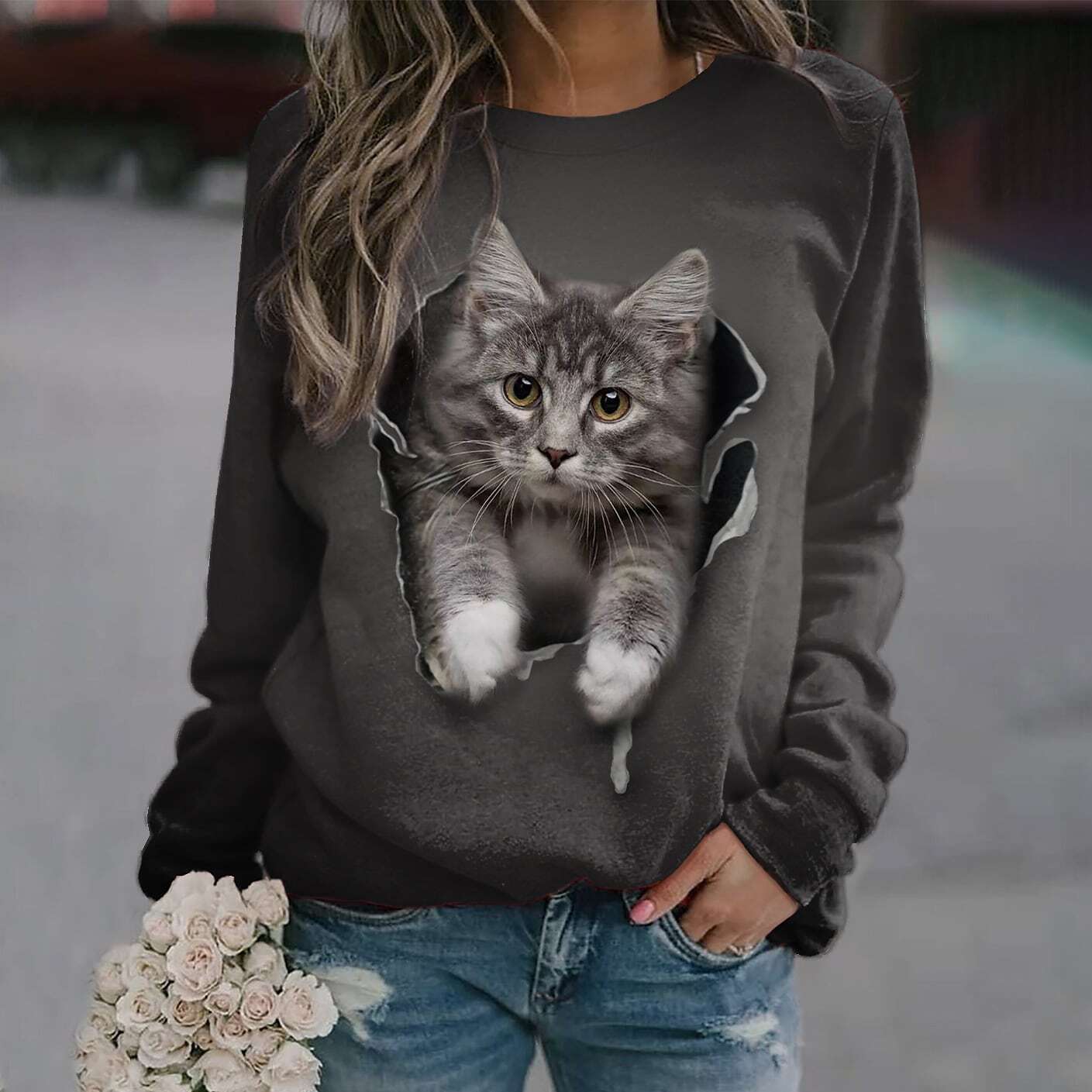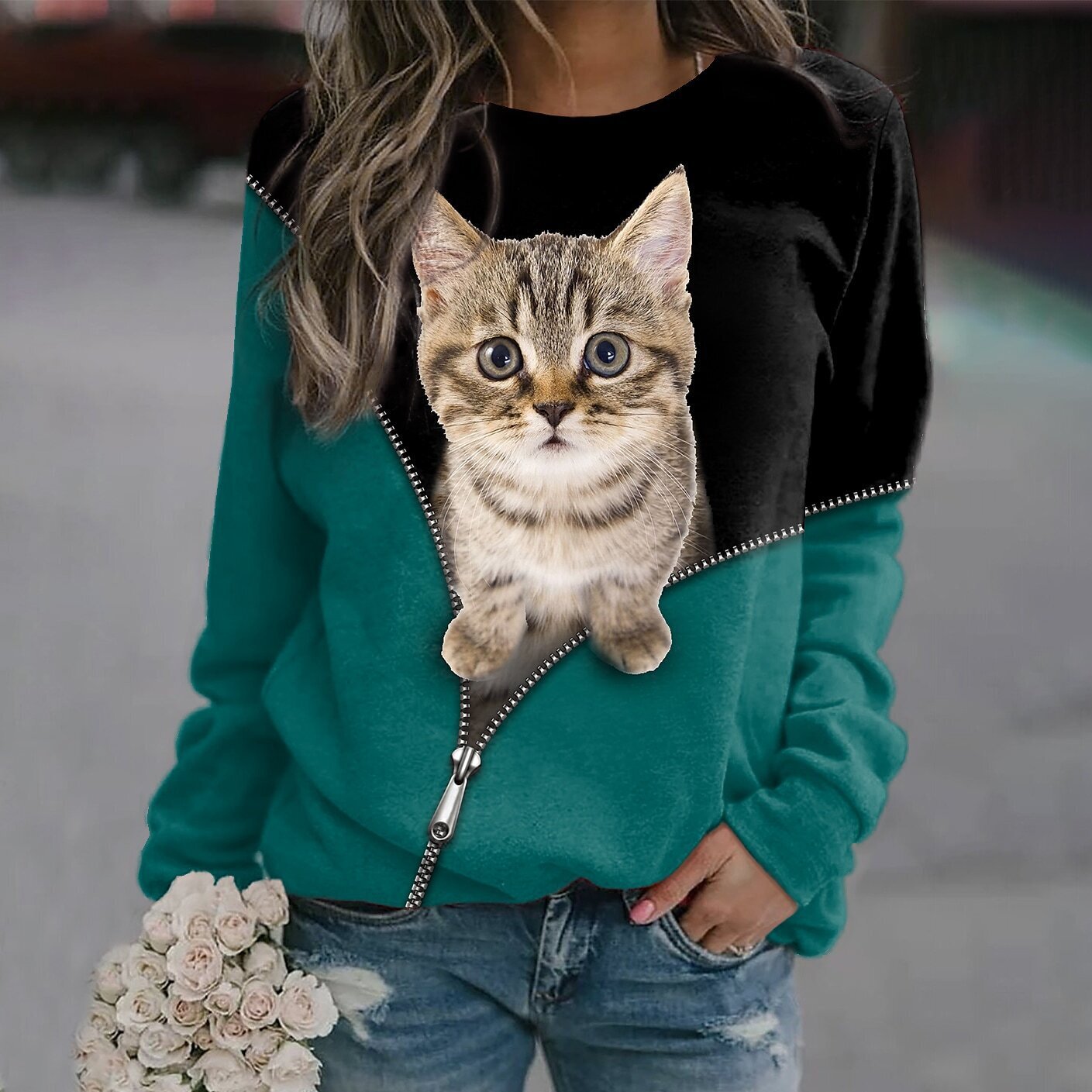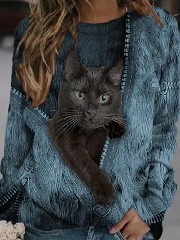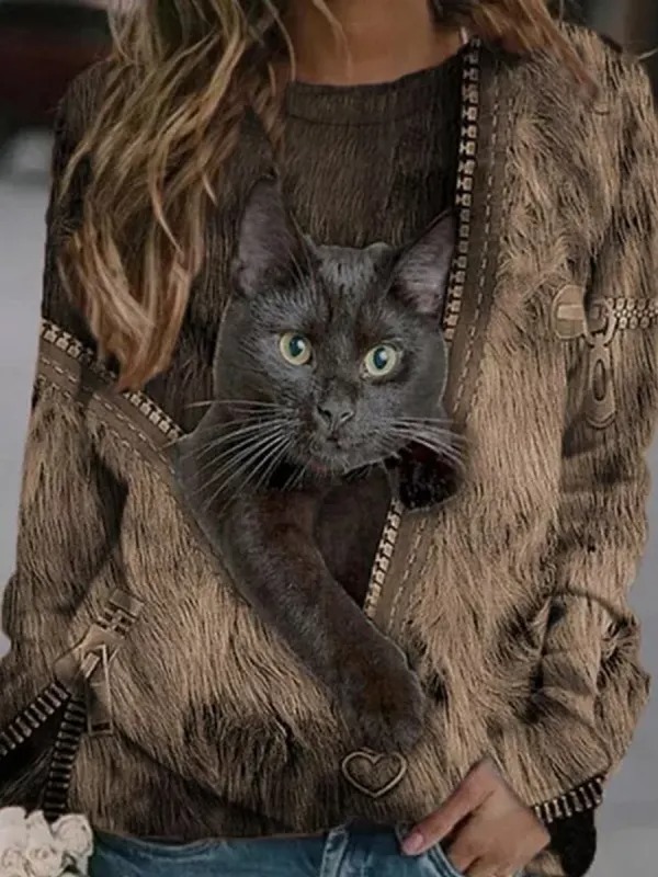 크로스 보더 가을과 겨울 새로운 여성용 긴팔 루즈한 라운드 넥 애니멀 프린트 새로운 여성용 풀오버 후드리스 탑스토어 가기