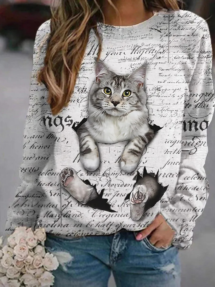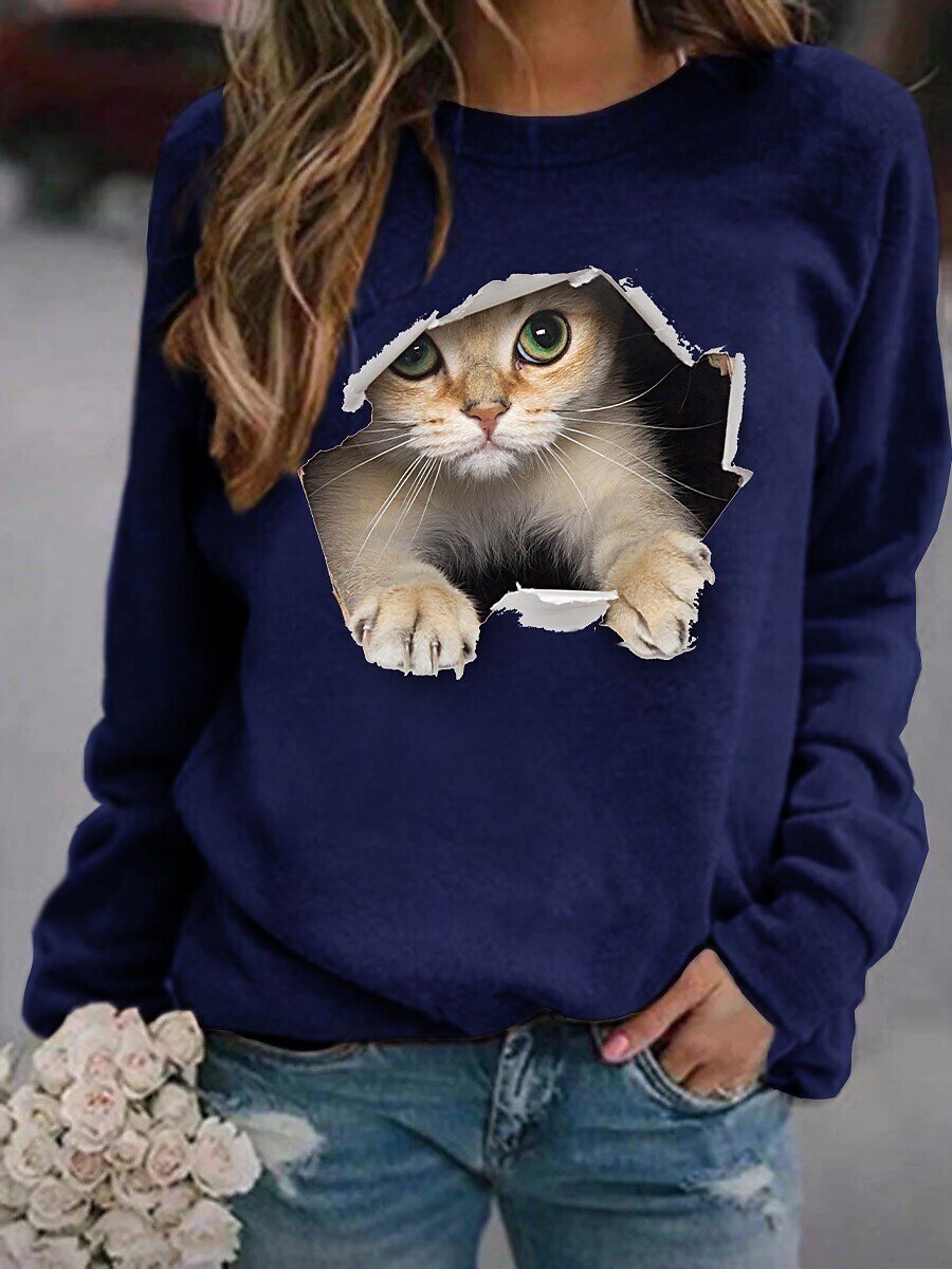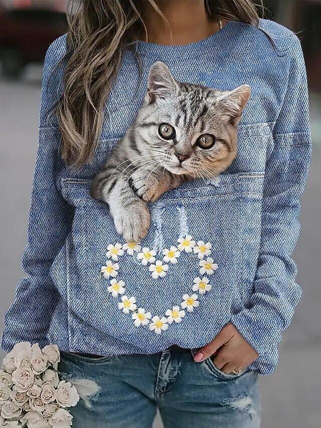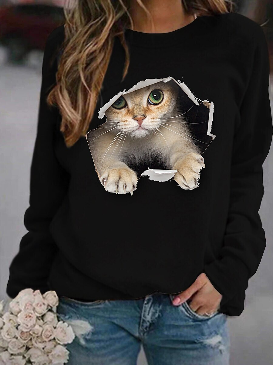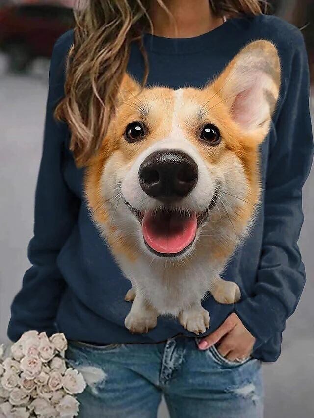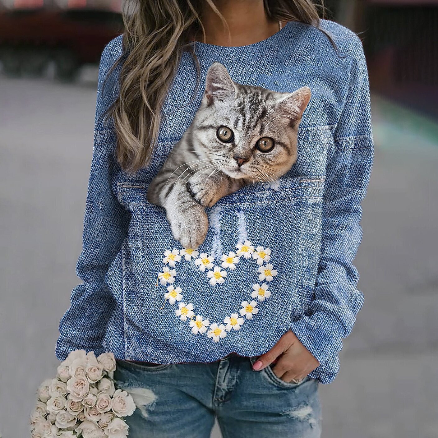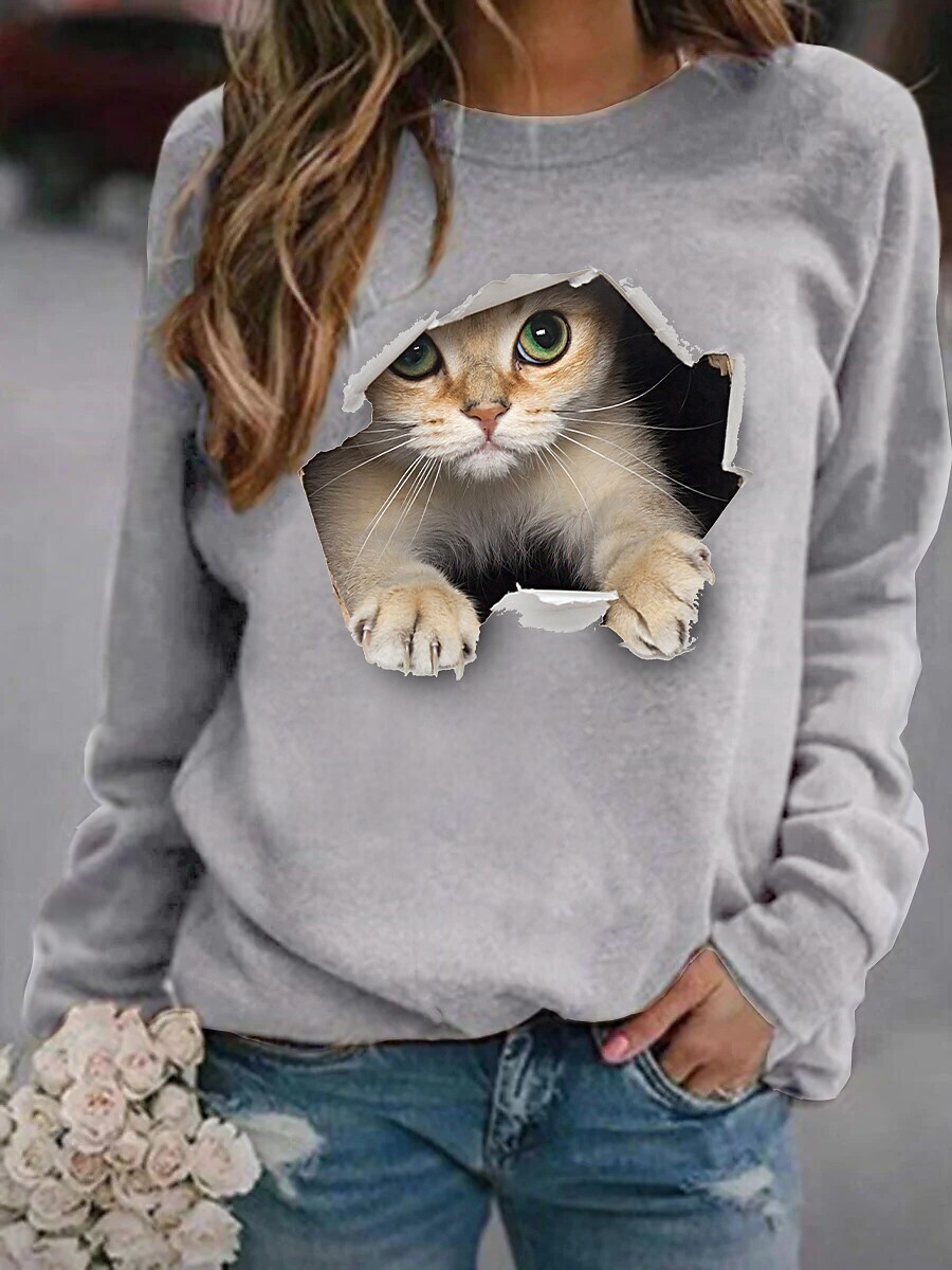 크로스 보더 가을과 겨울 새로운 여성용 긴팔 루즈한 라운드 넥 애니멀 프린트 새로운 여성용 풀오버 후드리스 탑스토어 가기