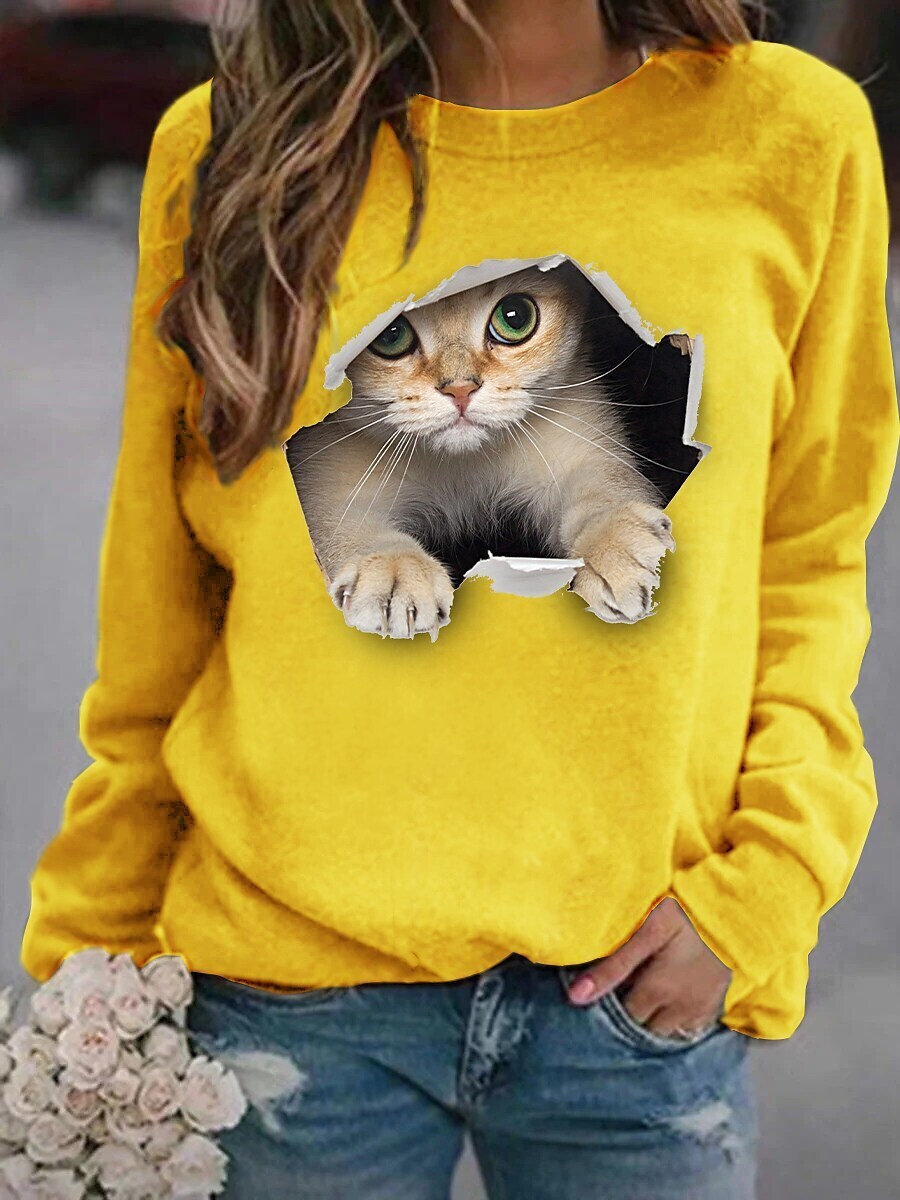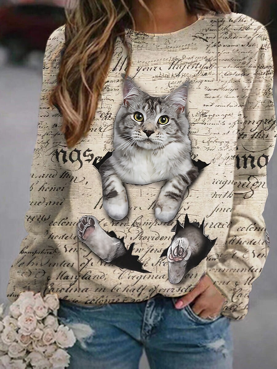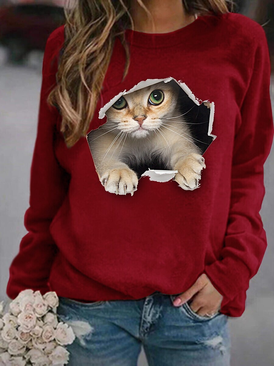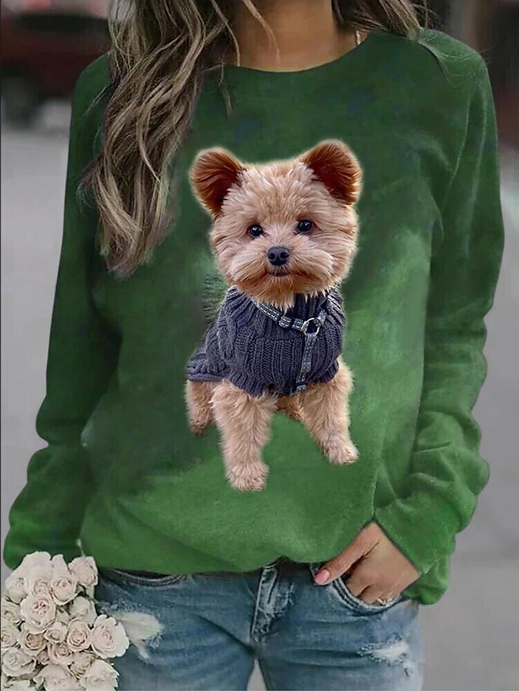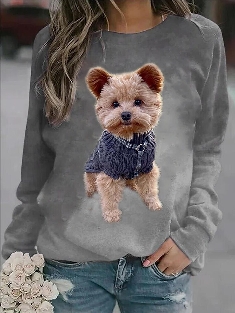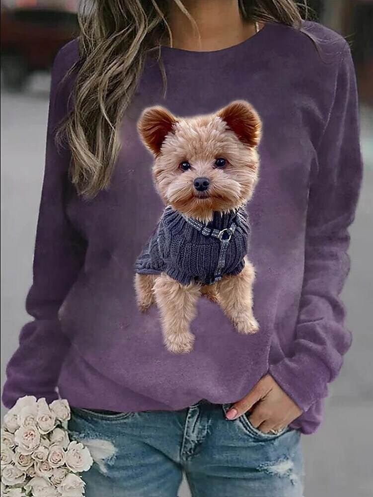 크로스 보더 가을과 겨울 새로운 여성용 긴팔 루즈한 라운드 넥 애니멀 프린트 새로운 여성용 풀오버 후드리스 탑스토어 가기