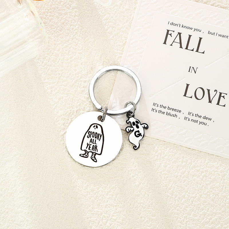 국경 할로윈 키 체인 크리스마스 스테인레스 스틸 펜던트 만화 유령 보석 귀여운 도매 레터링스토어 가기