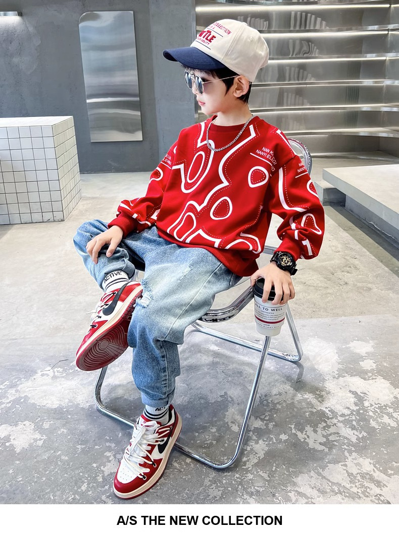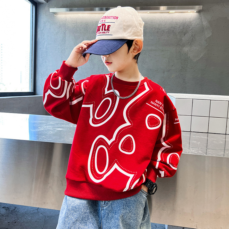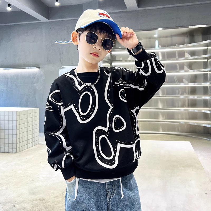 소년 봄과 가을 두꺼운 스웨터 2023 새로운 어린이 가을 흑백 티셔츠 큰 소년의 강아지 잘 생긴 튀김 거리 가을 패션스토어 가기