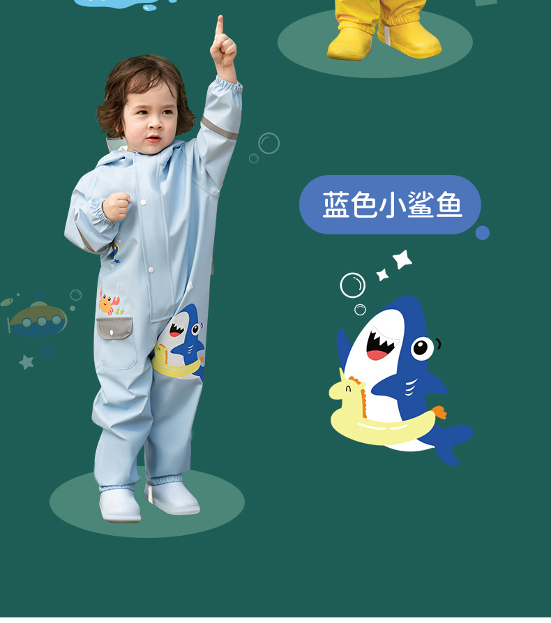 • 오션 블루 스몰 샤크 결합 레인코트 [보관 백팩 가방을 보내]
