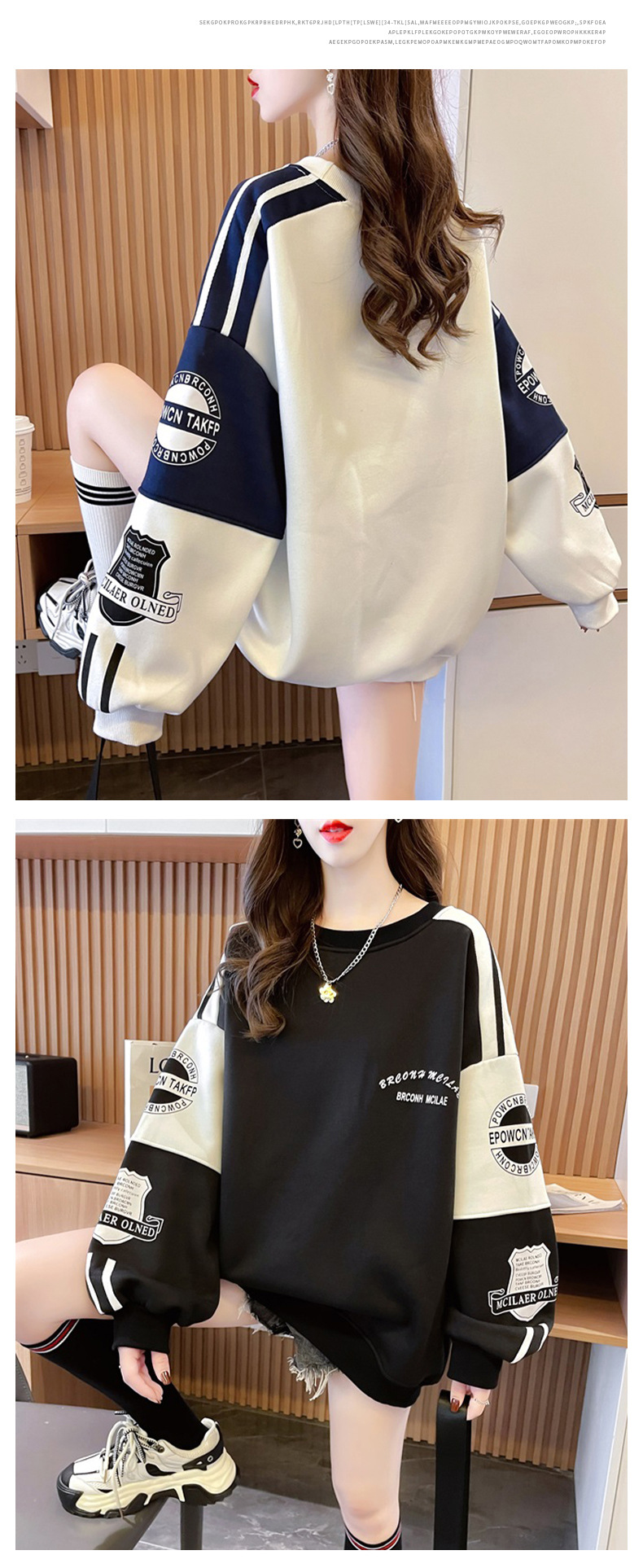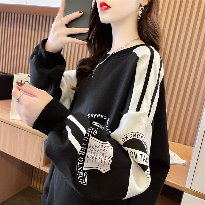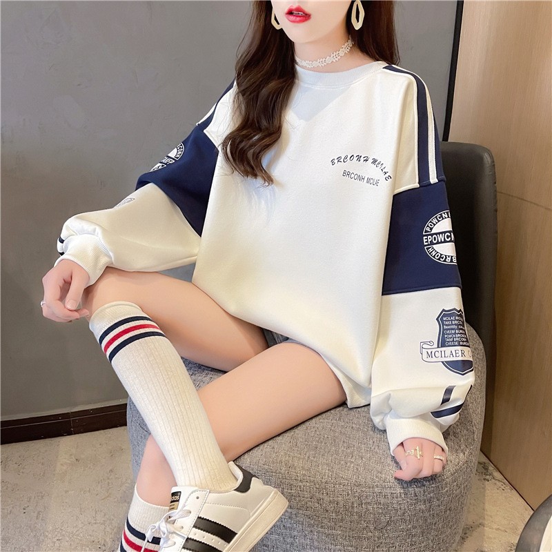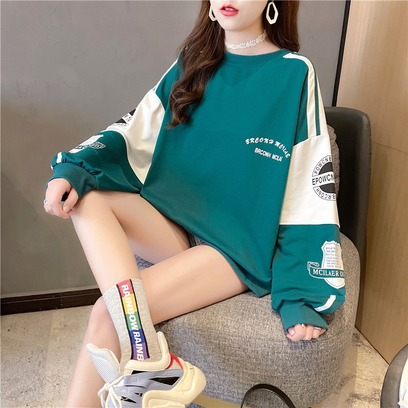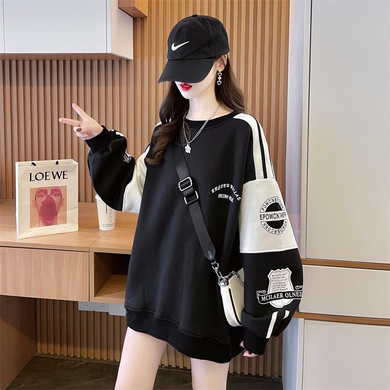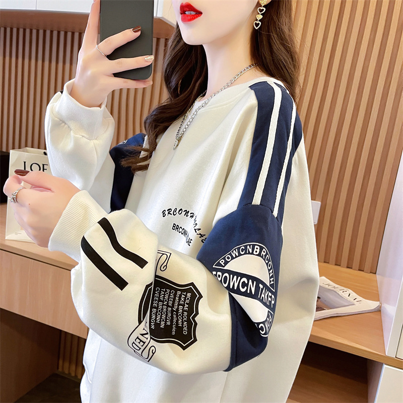 대비 색상 땀 여자의 통통녀 여성 의류 느슨한 학생 크루넥 편지 긴 소매 in 트렌디 얇은 가을 탑 여자의 유행스토어 가기