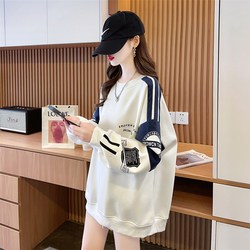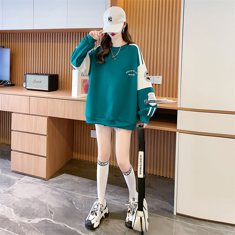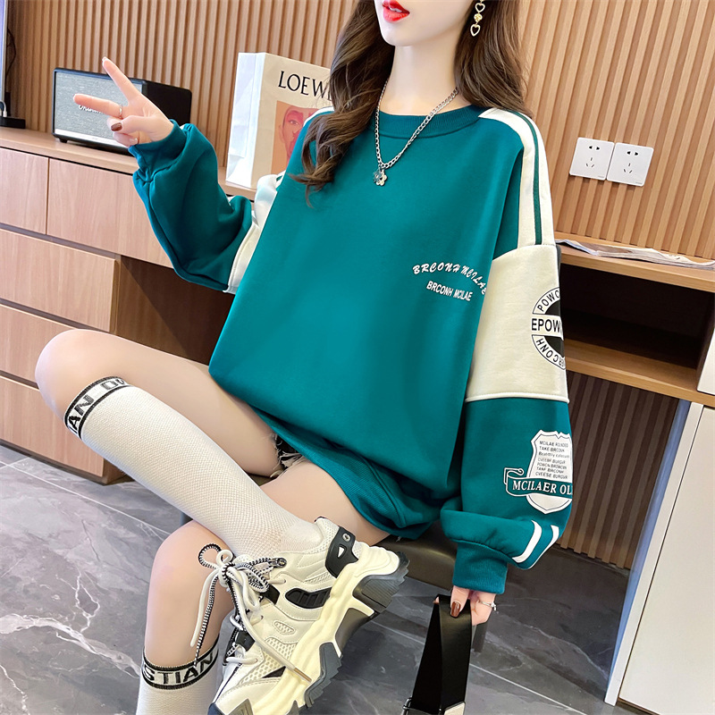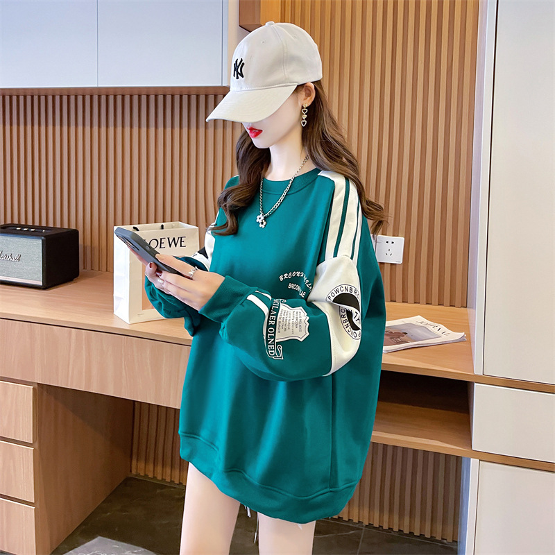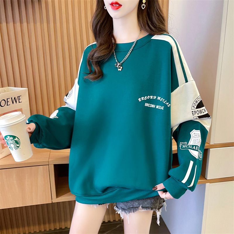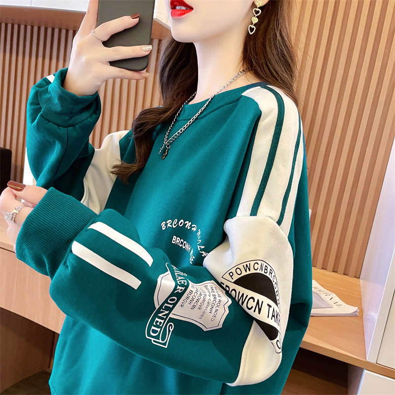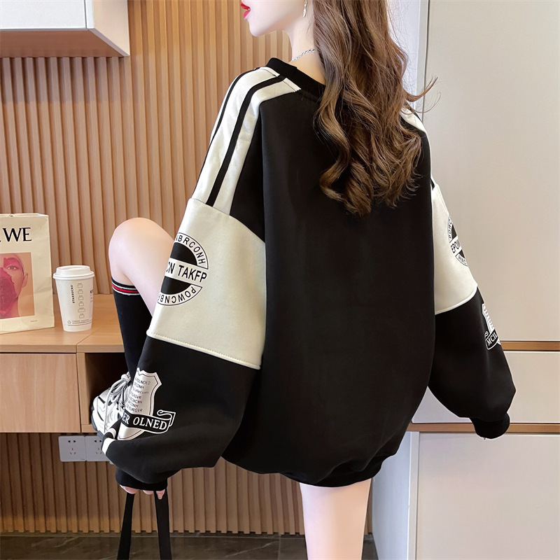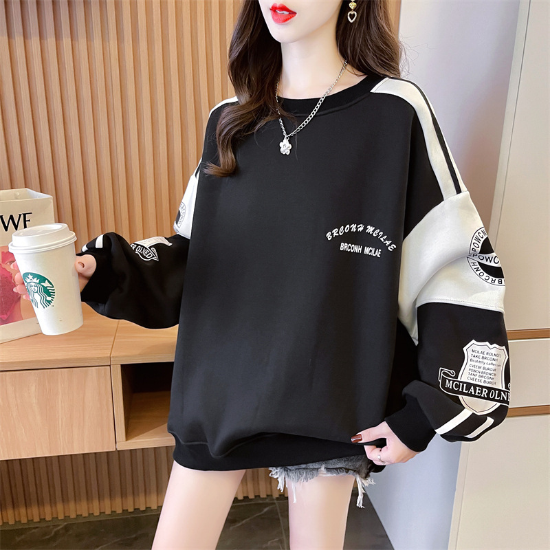 대비 색상 땀 여자의 통통녀 여성 의류 느슨한 학생 크루넥 편지 긴 소매 in 트렌디 얇은 가을 탑 여자의 유행스토어 가기