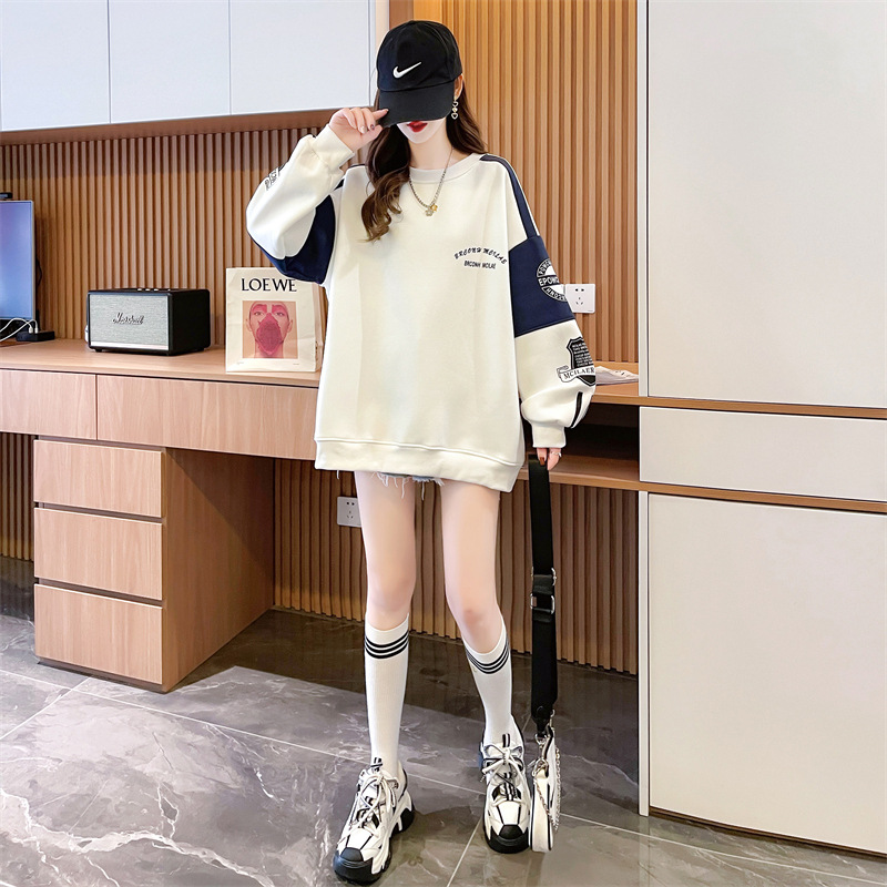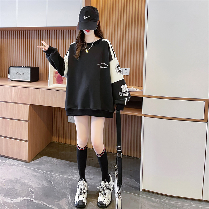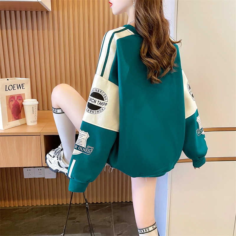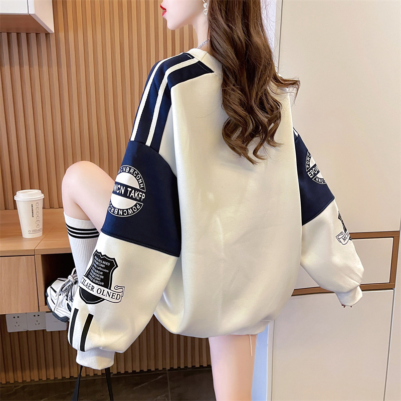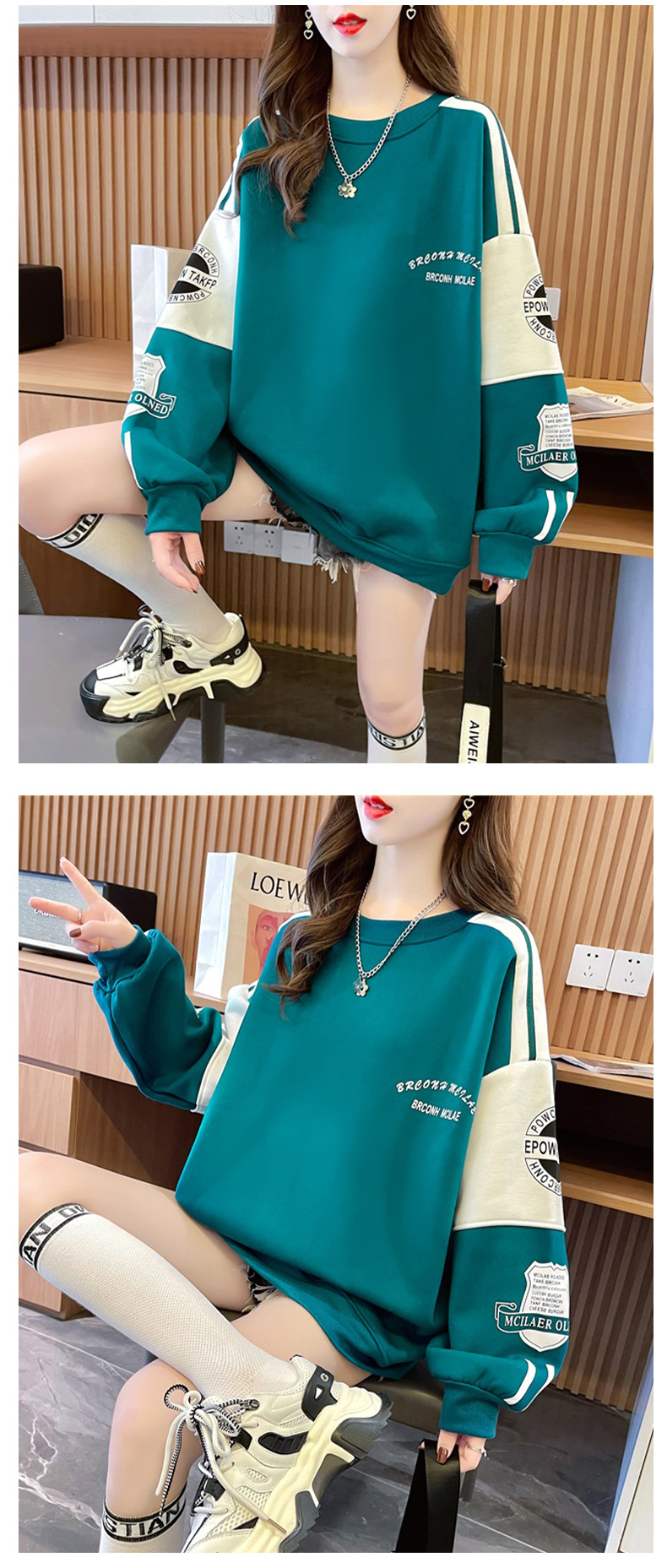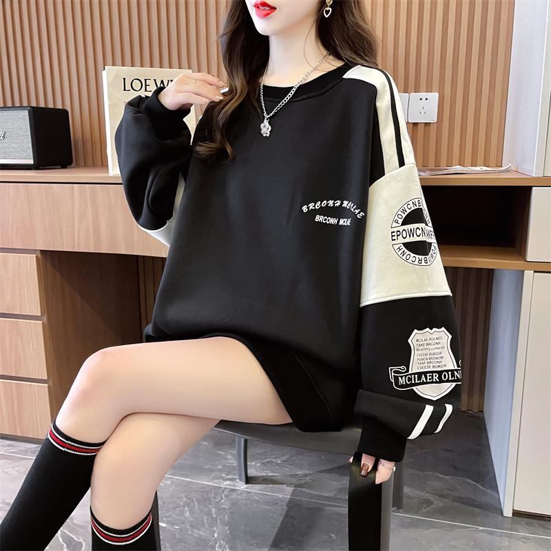 대비 색상 땀 여자의 통통녀 여성 의류 느슨한 학생 크루넥 편지 긴 소매 in 트렌디 얇은 가을 탑 여자의 유행스토어 가기
