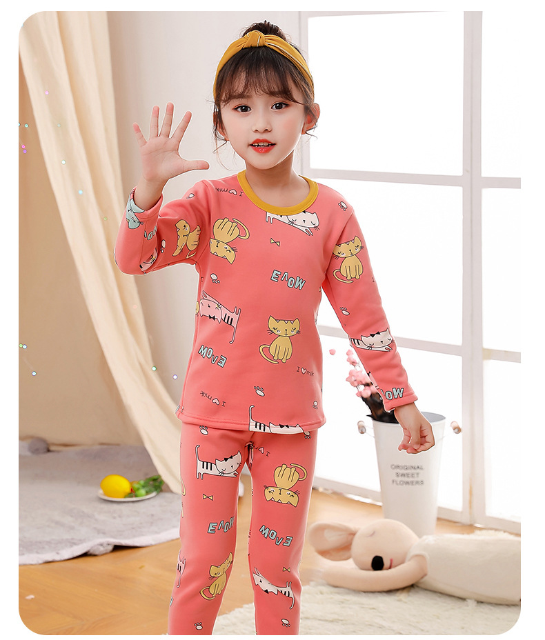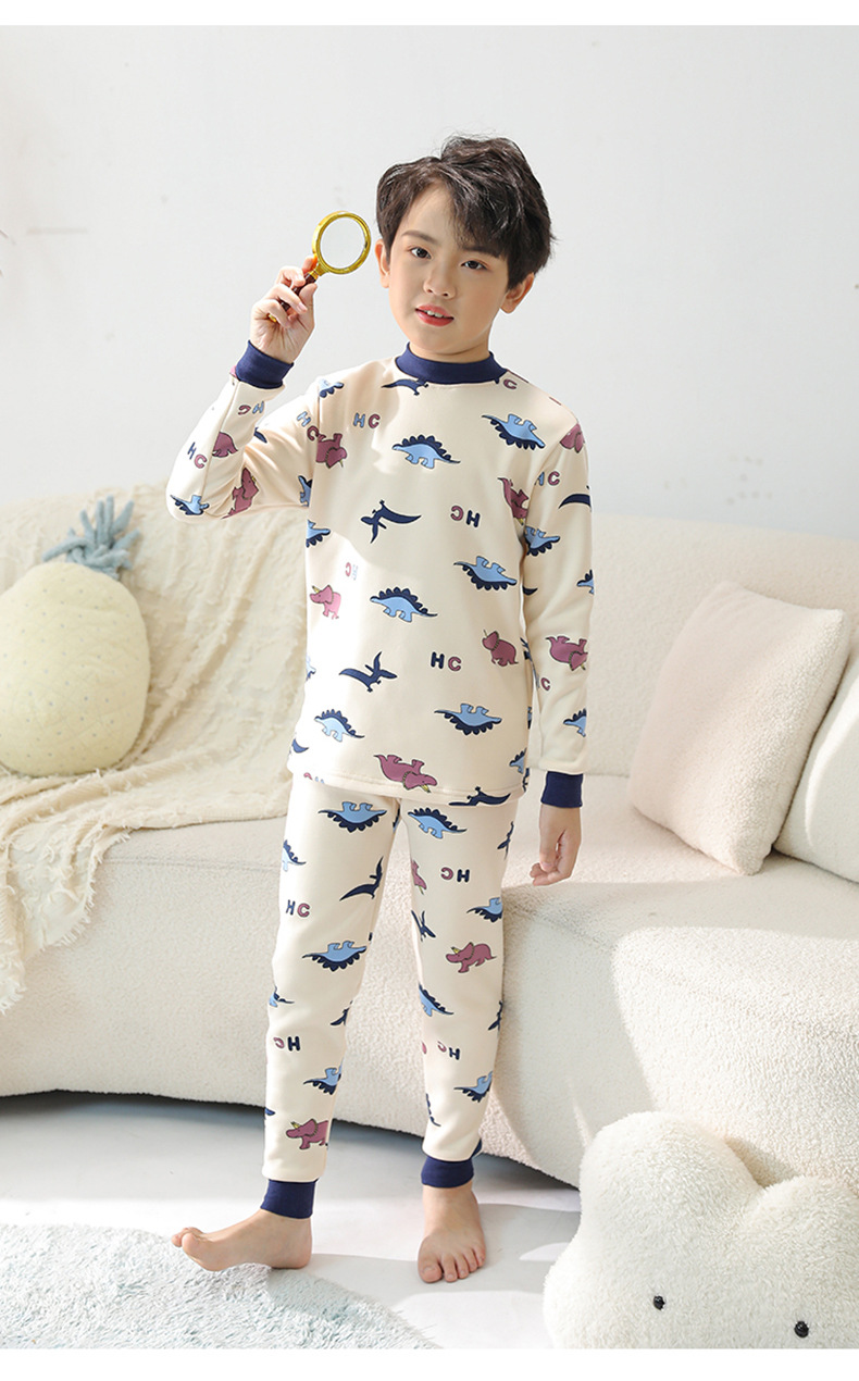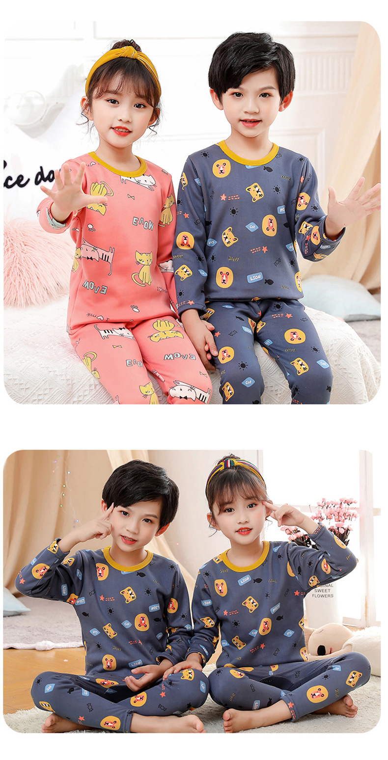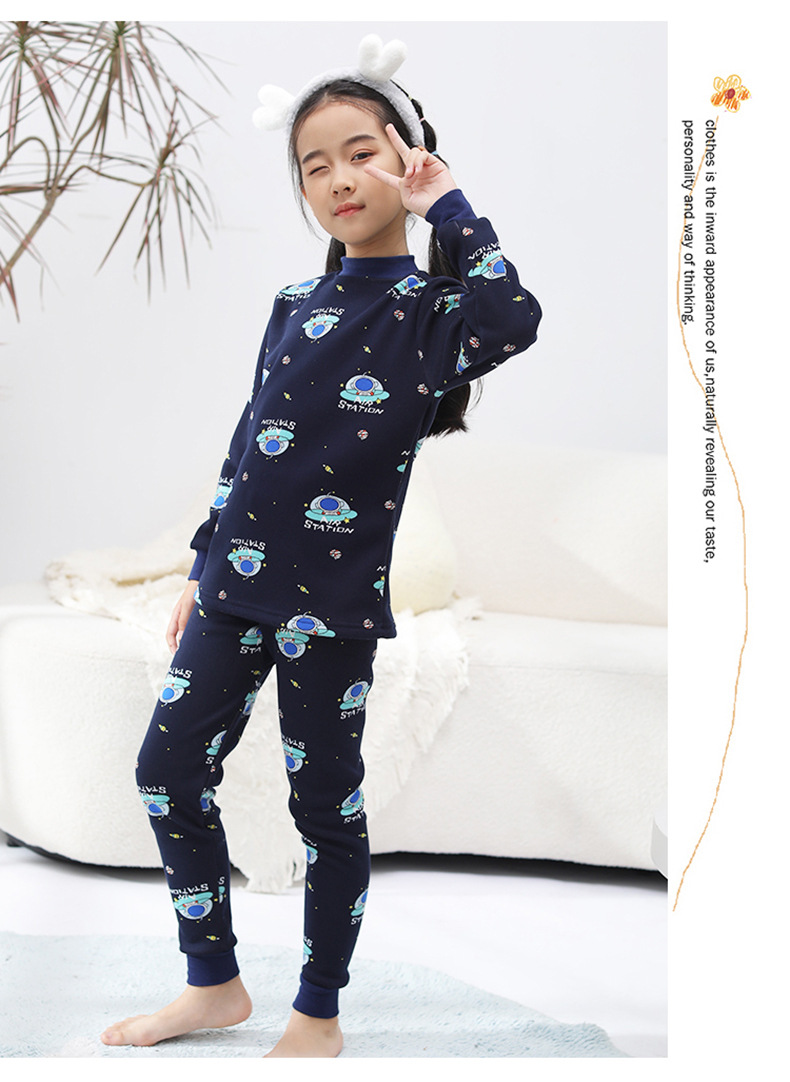 2023 새로운 어린이 벨벳 세트 중간 및 큰 어린이의 따뜻한 가정 의류 남성과 여성의 어린이 착용 두꺼운 가을 바지 내부 잠옷