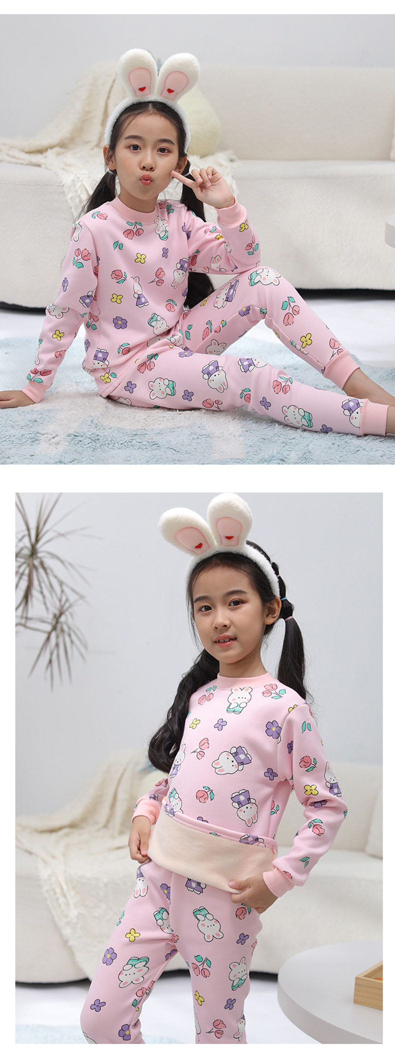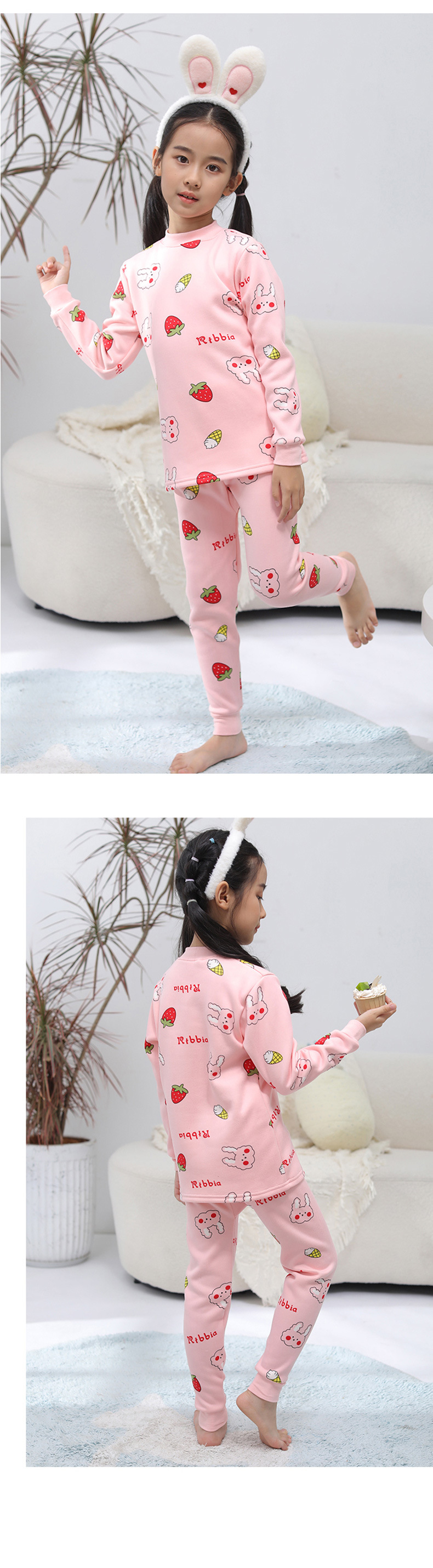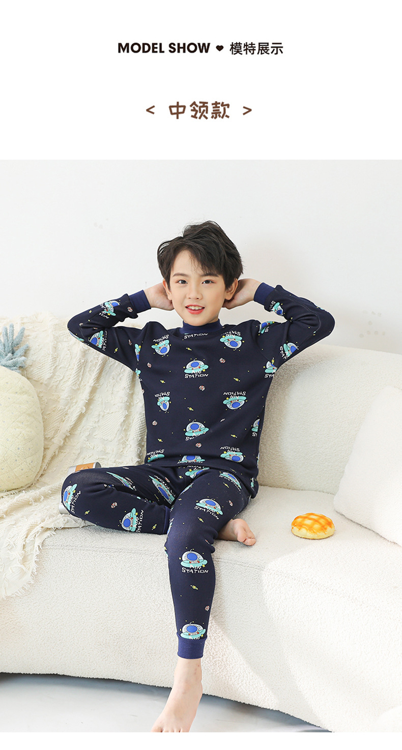 2023 새로운 어린이 벨벳 세트 중간 및 큰 어린이의 따뜻한 가정 의류 남성과 여성의 어린이 착용 두꺼운 가을 바지 내부 잠옷