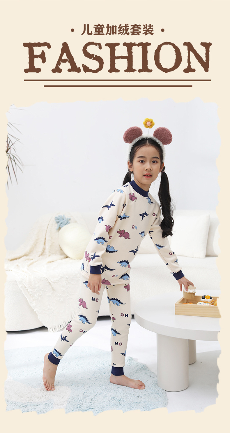 2023 새로운 어린이 벨벳 세트 중간 및 큰 어린이의 따뜻한 가정 의류 남성과 여성의 어린이 착용 두꺼운 가을 바지 내부 잠옷스토어 가기
