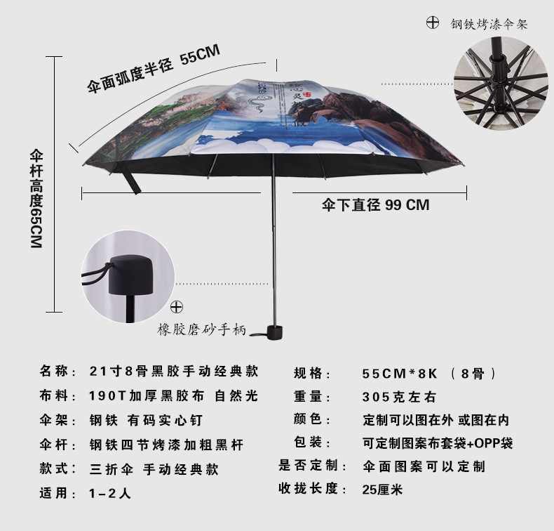 디지털 우산 인쇄 패턴 문화 창조적 인 비즈니스 선물 3 배 검은 플라스틱 우산 광고 우산 인쇄 로고 도매 맑고 비가 오는 이중 사용
