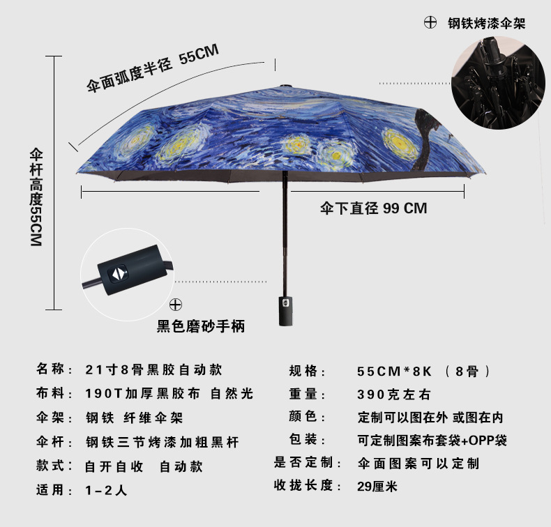 • 맞춤형 8-뼈 검은 접착제 디지털 자동 우산
