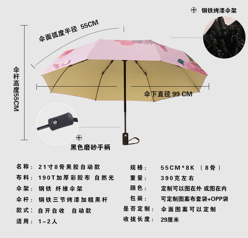 • 맞춤형 10 뼈 비닐 디지털 자동 우산