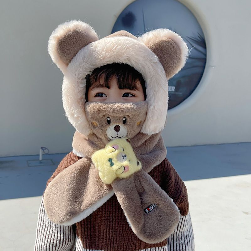 한국식 아기 모자 겨울 어린이 스카프 통합 귀여운 곰 귀마개 스카프 가을과 겨울 따뜻한 니트 모자