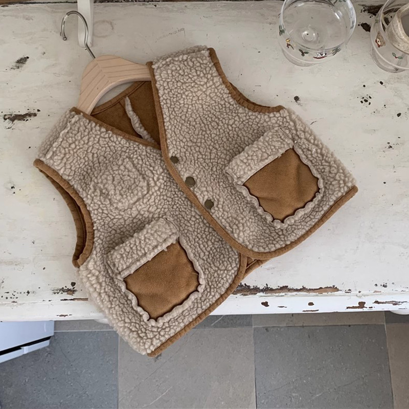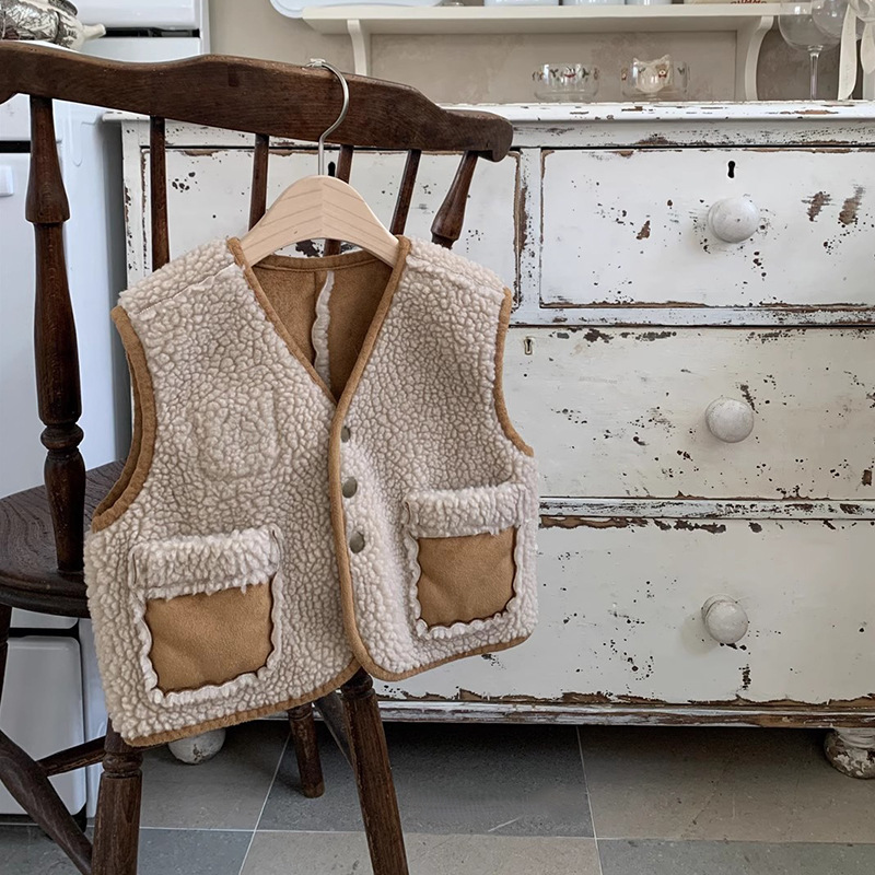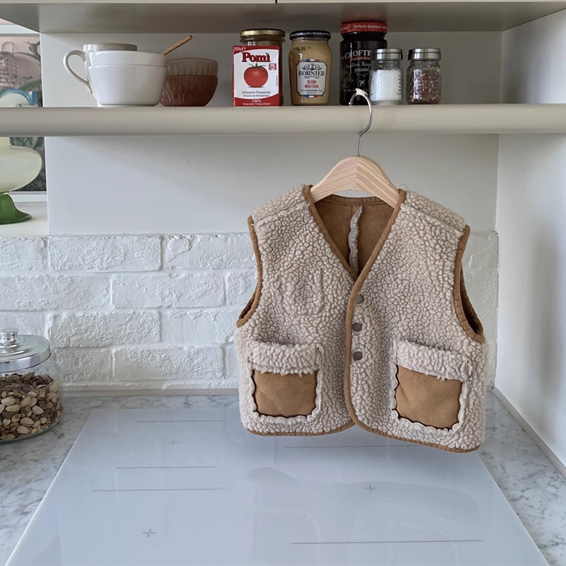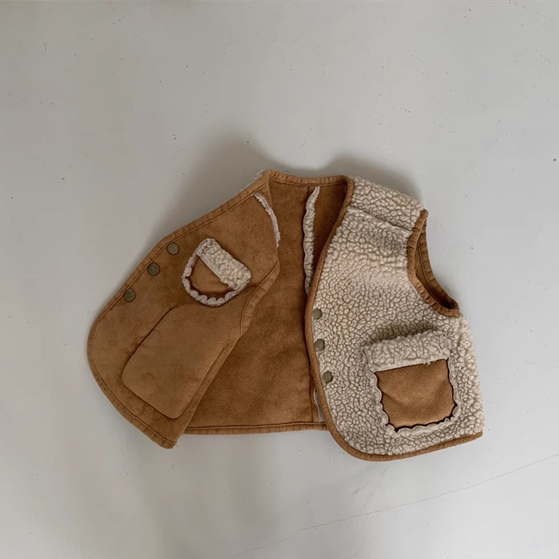 가을과 겨울 남성과 여성의 아동복 조끼 코트 아기의 외국 스타일 어린이 맞춤형 유행 브랜드 양면 착용 인조 모피 원피스 조끼스토어 가기
