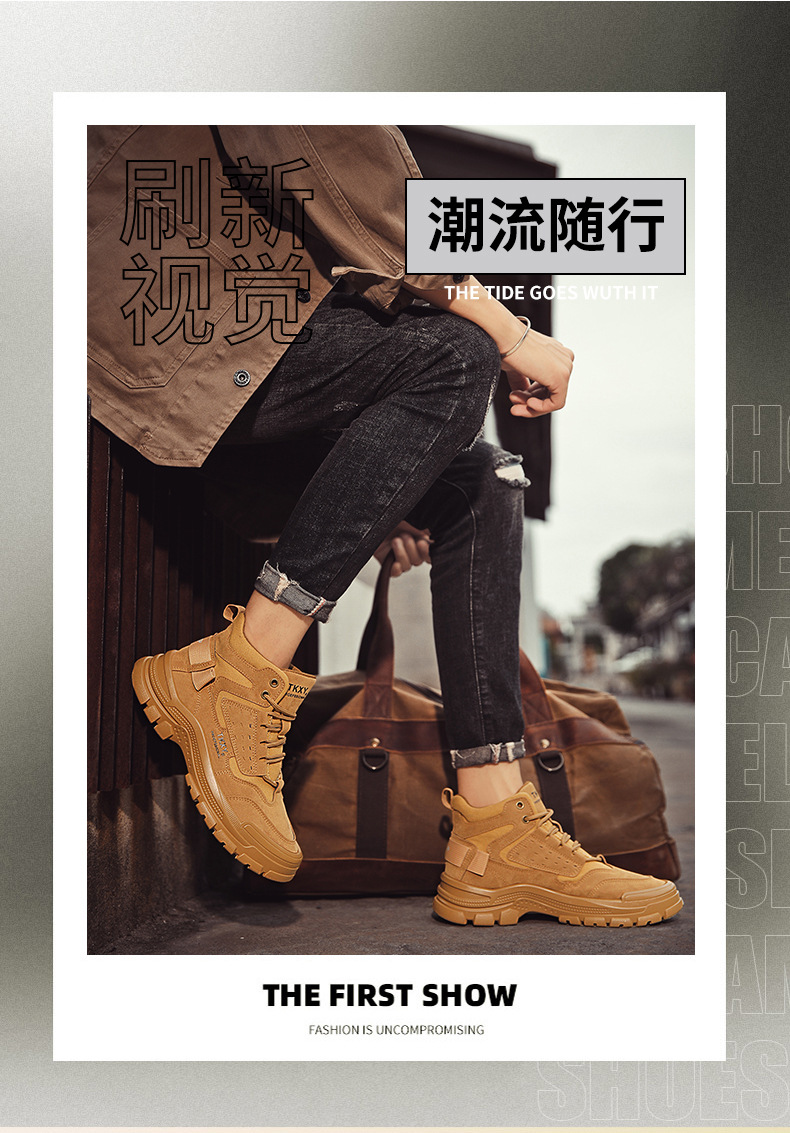 가을 새로운 마틴 부츠 하이탑 스웨이드 영국 스타일 스포츠 복고풍 유행 신발 패션 야외 두꺼운 단독 높이 증가 남성 신발스토어 가기