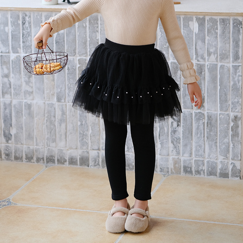 【30% off 재고 정리 상품, 반품 불가】벨벳 안감이 있는 레깅스 스커트, 투피스 디자인 아동용 스커트 팬츠, 여자 아기용 긴 바지, 겨울용스토어 가기