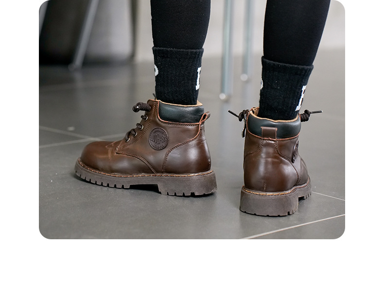 여자 첫 번째 레이어 소 가죽 마틴 부츠 2023 가을과 겨울 정품 가죽 대황 부츠 패션 잘 생긴 소년 부츠스토어 가기