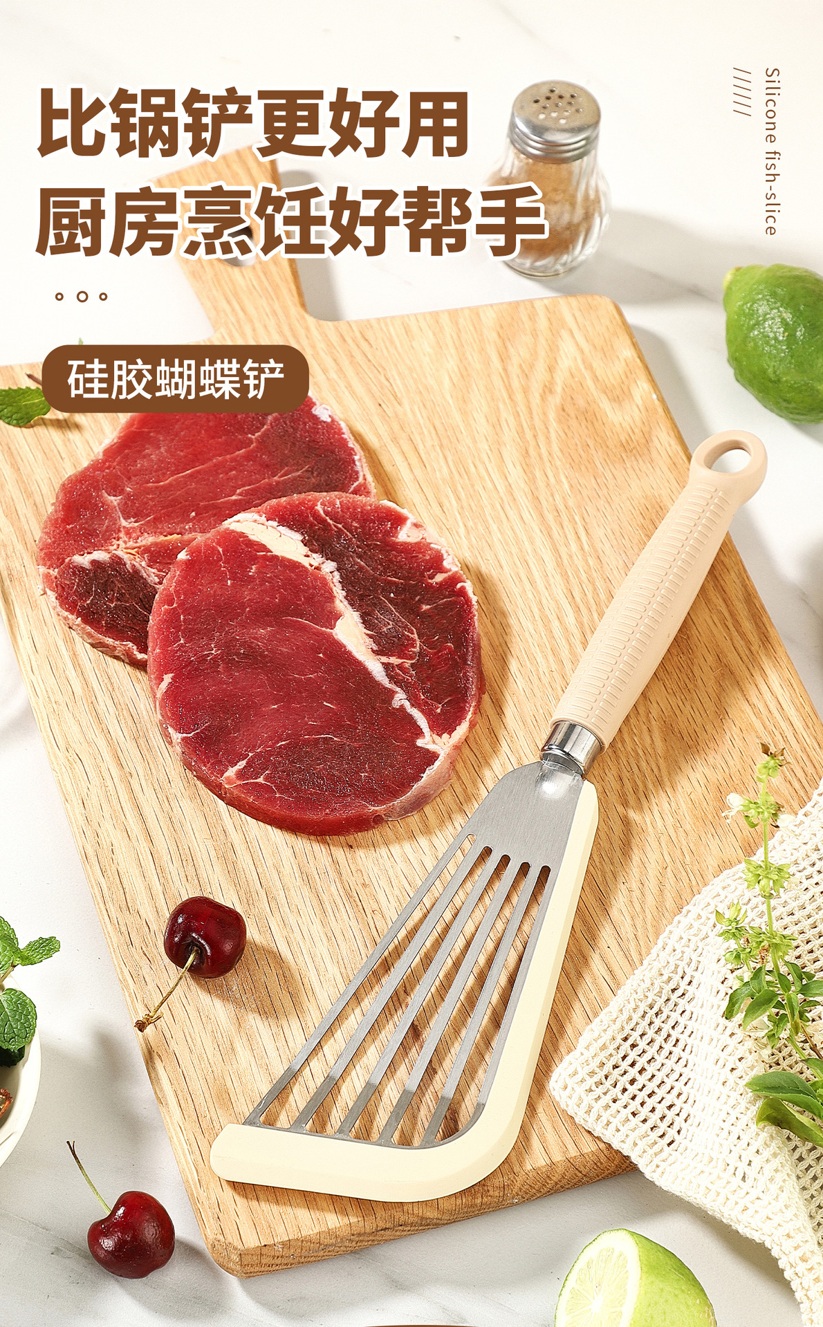 2 색 실리콘 스테인레스 스틸 튀긴 생선 삽 가정용 튀김 생선 플립 실리콘 삽 실리콘 스벨 요리 튀김 생선 삽