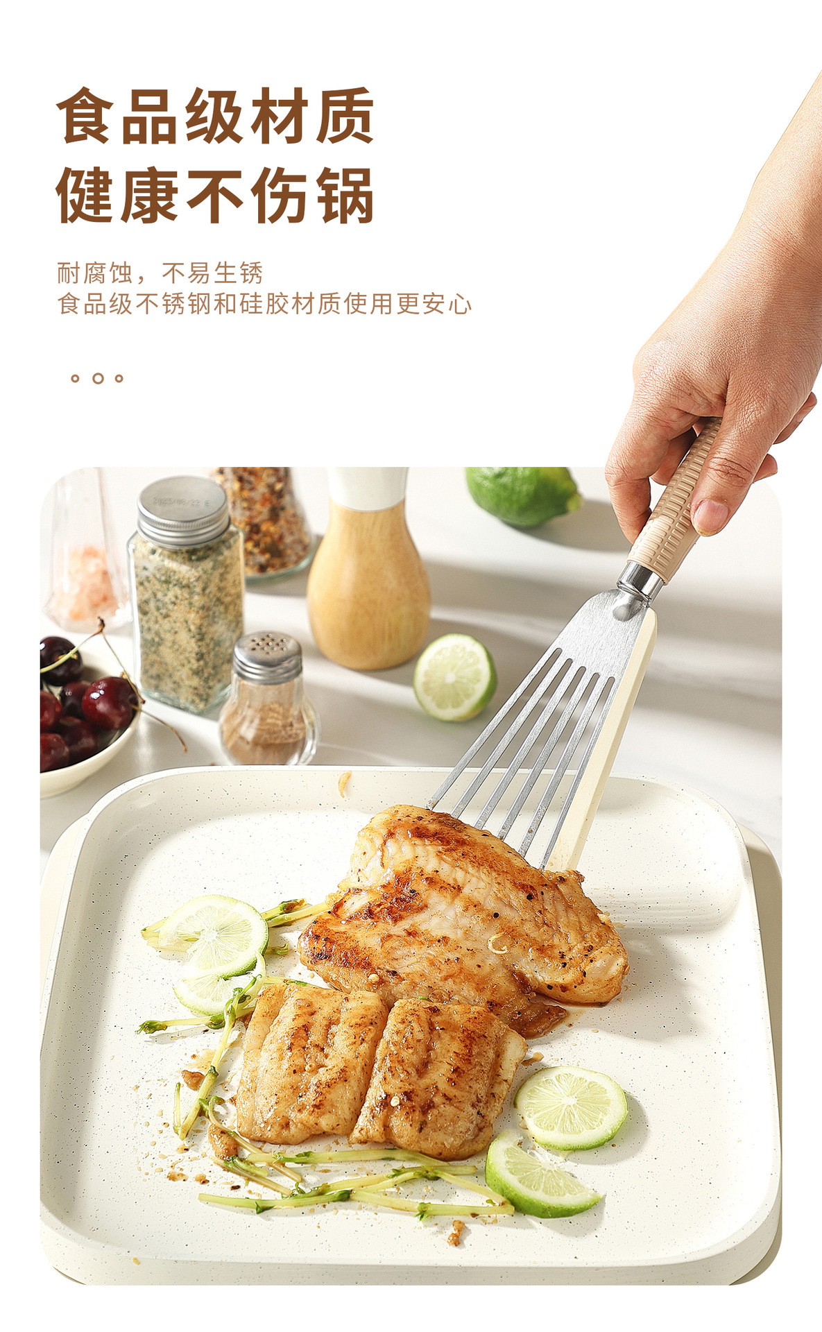 2 색 실리콘 스테인레스 스틸 튀긴 생선 삽 가정용 튀김 생선 플립 실리콘 삽 실리콘 스벨 요리 튀김 생선 삽스토어 가기