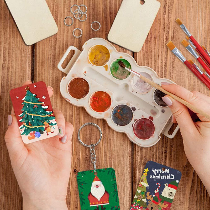 나무 빈 직사각형 키 체인 나무 직사각형 키 체인 펜던트 홈 크리스마스 휴일 장식 용품스토어 가기