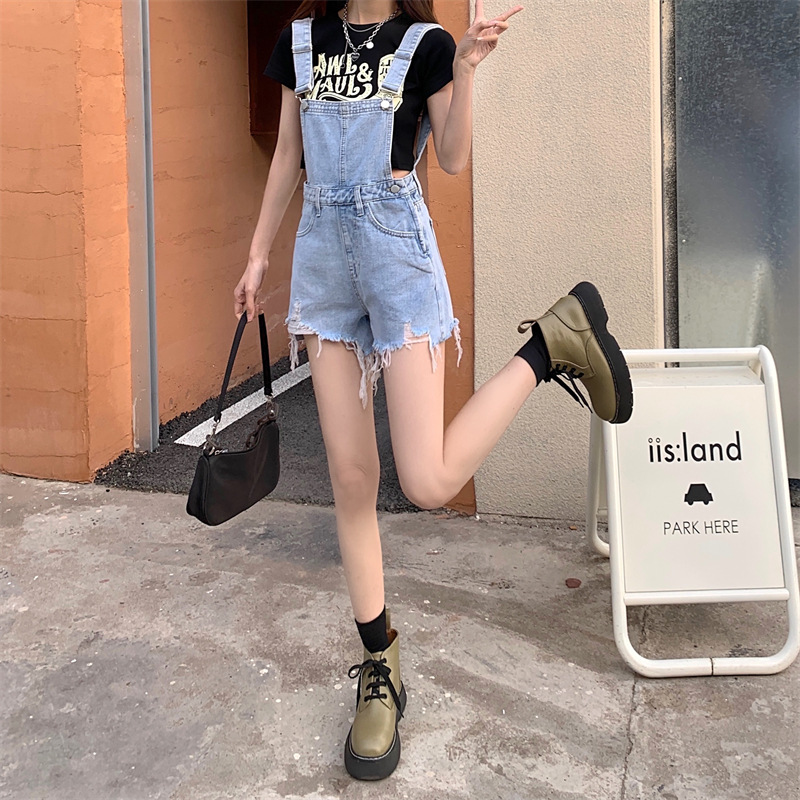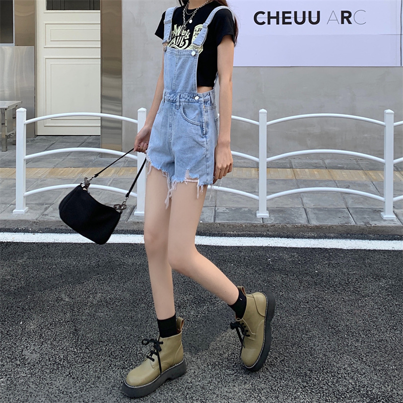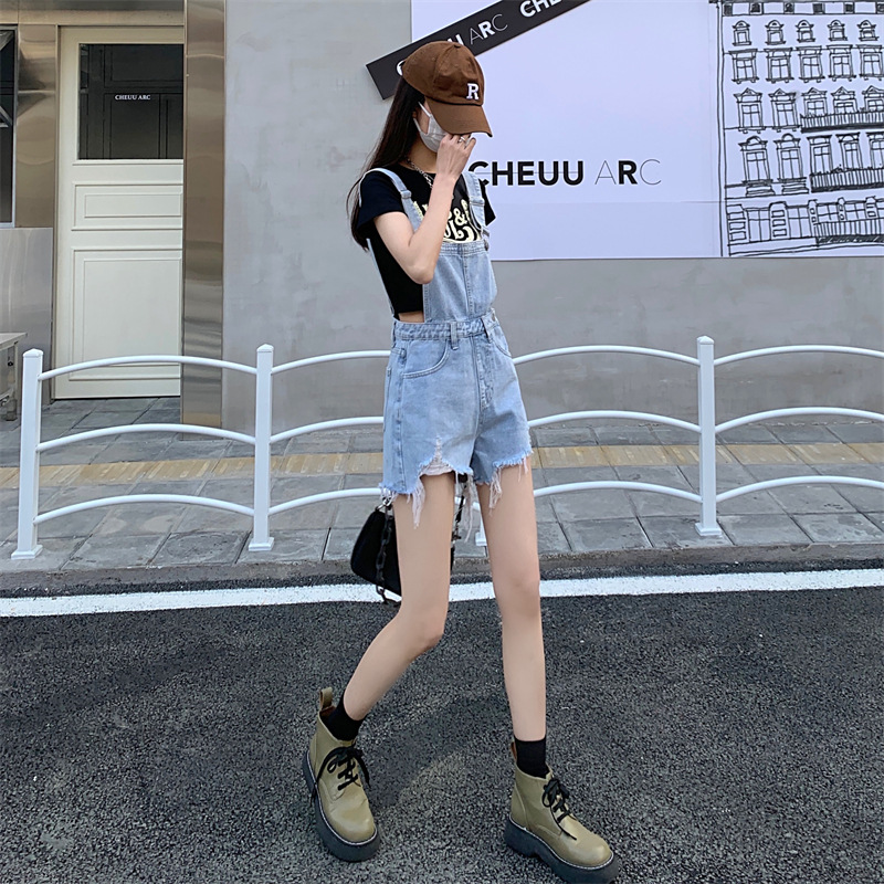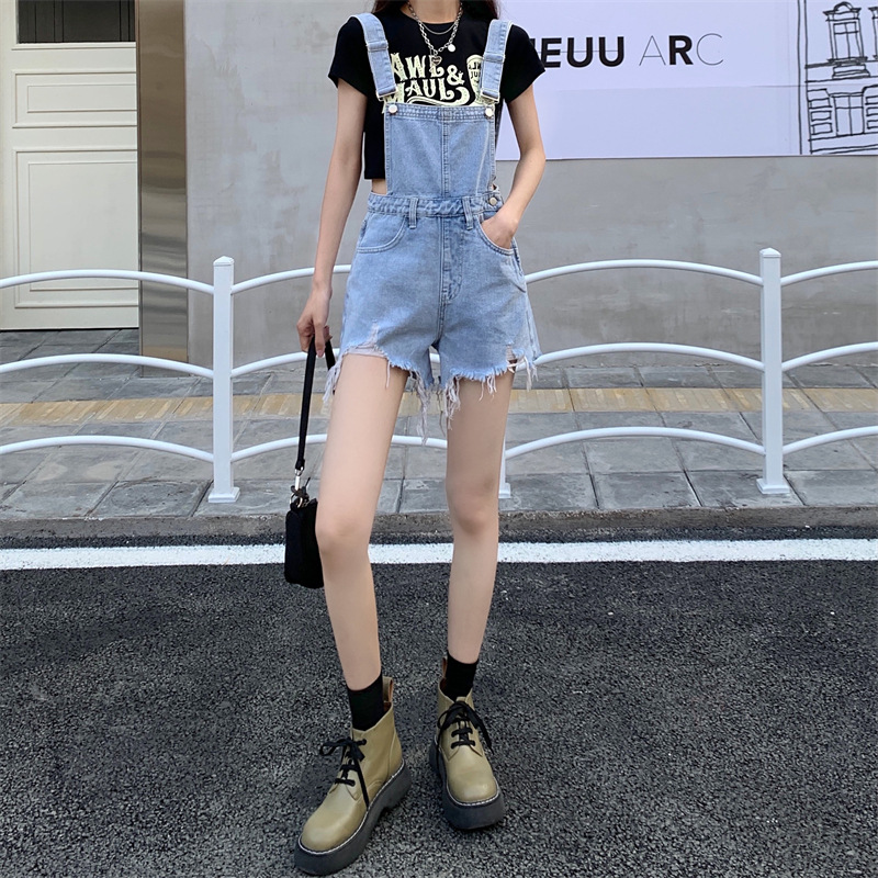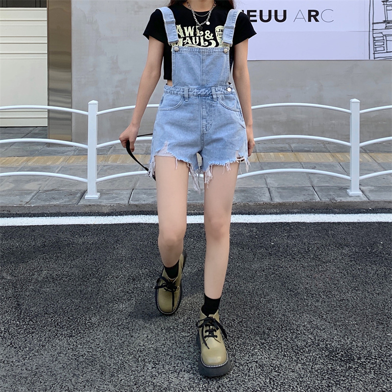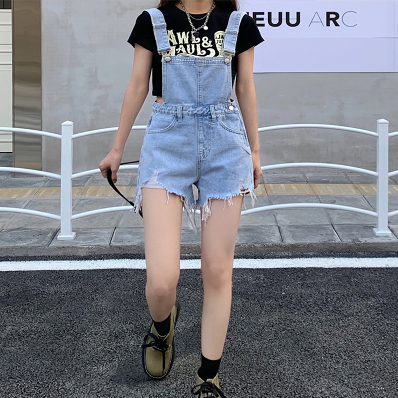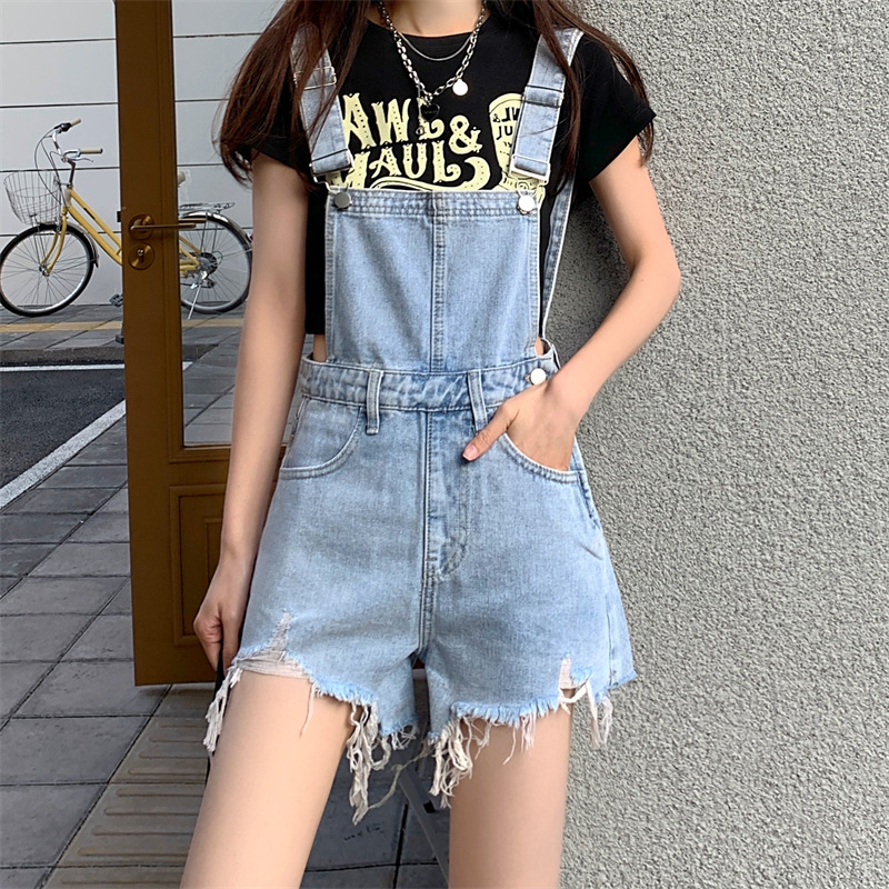해외 무역 핫 데님 스트랩 바지 여자의 짧은 여름 새로운 플러스 사이즈 통통한 자매 느슨한 와이드 레그 버 핫 팬츠스토어 가기