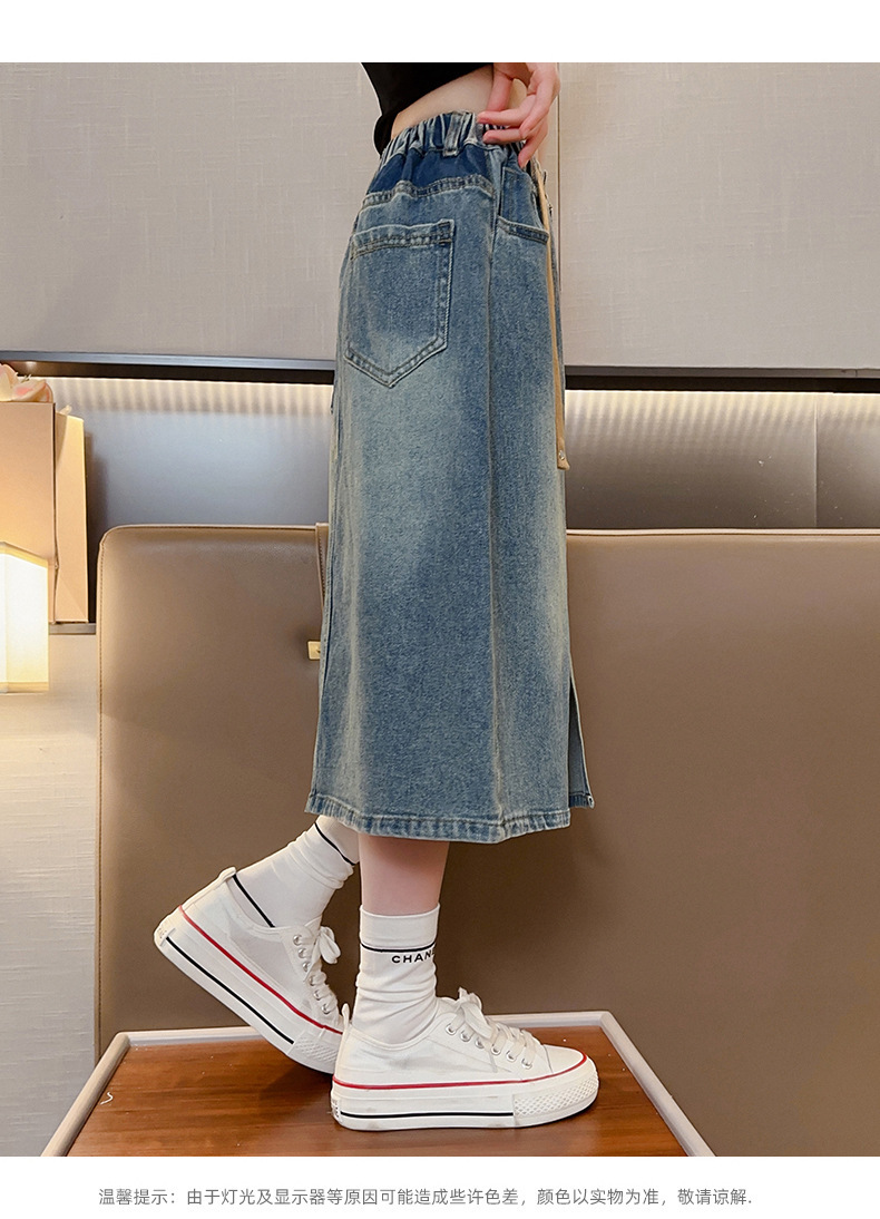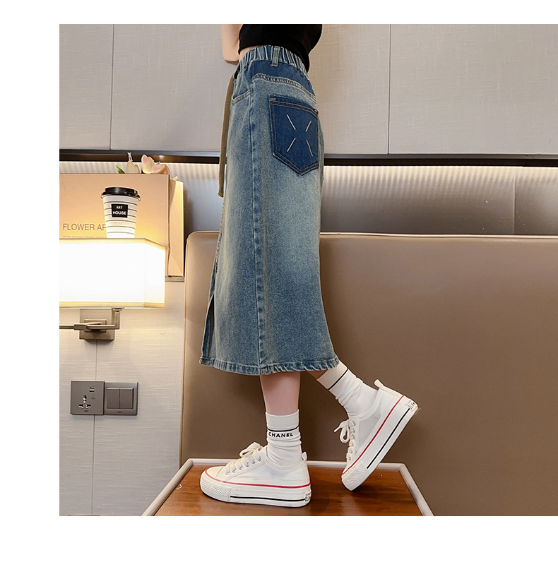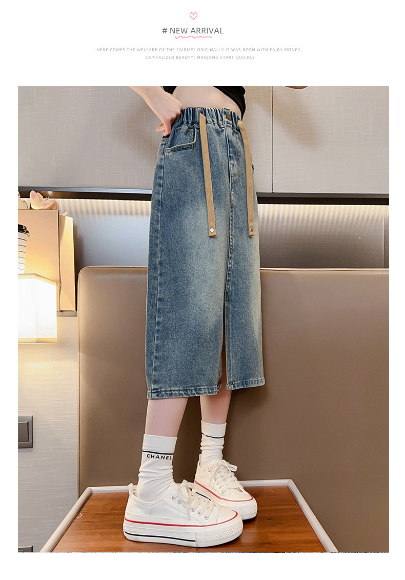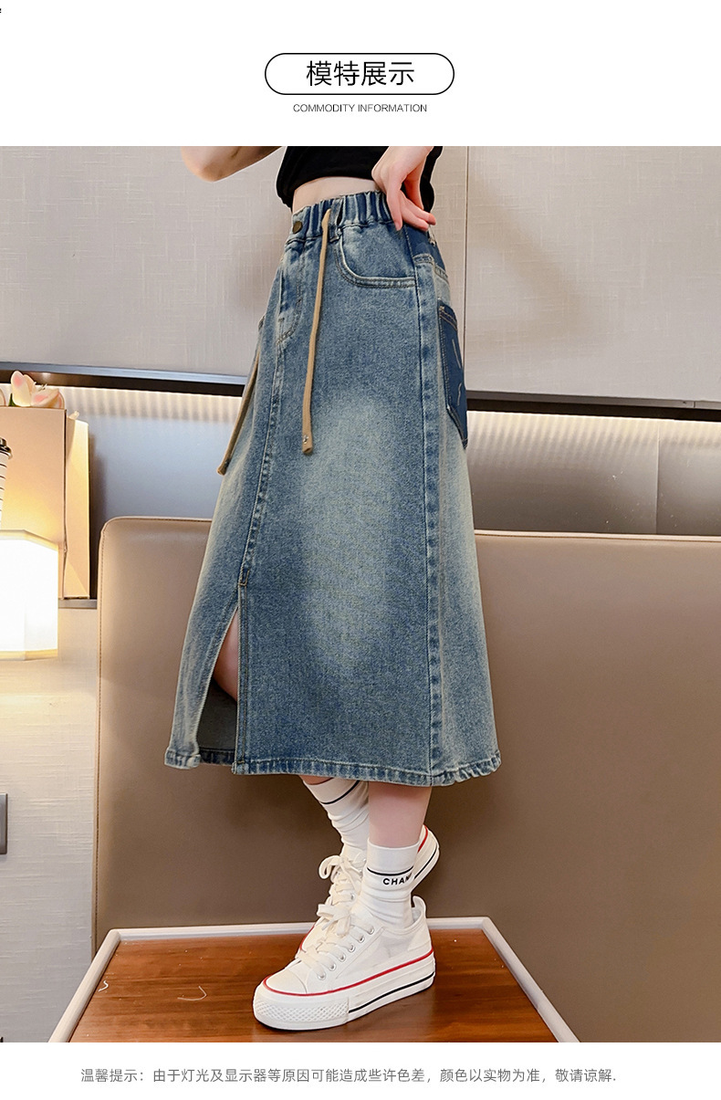 대외 무역 아동 스커트 2025 여아 데님 스커트, 중대형 아동 롱 스커트, 아동 패션 슬릿 스커트, 아동복 트렌드스토어 가기
