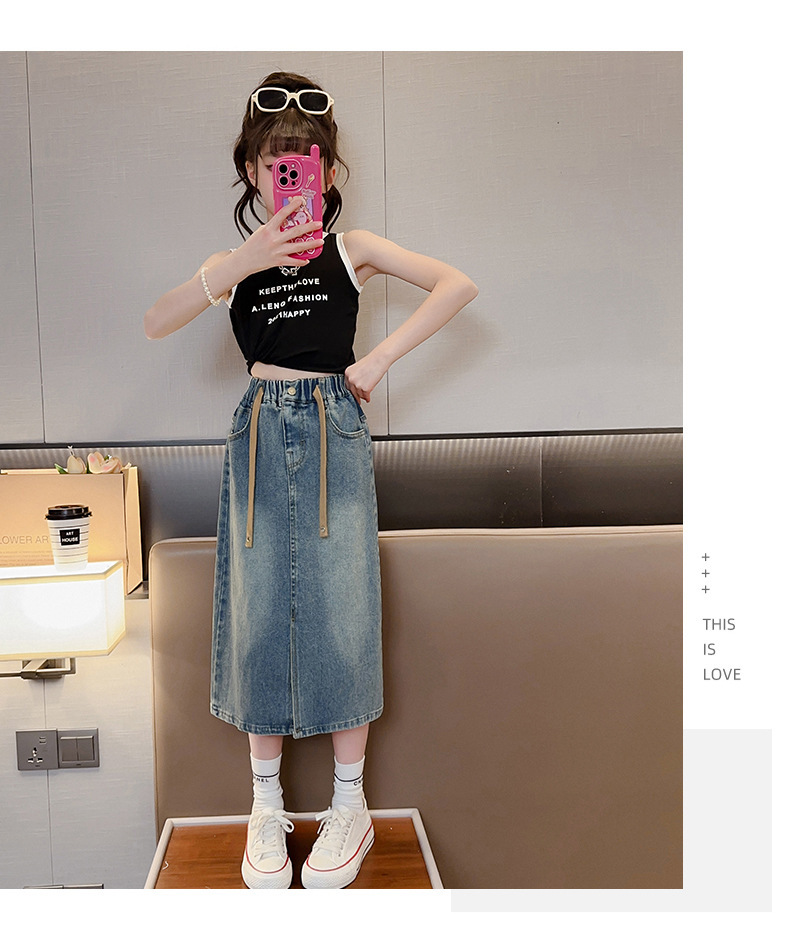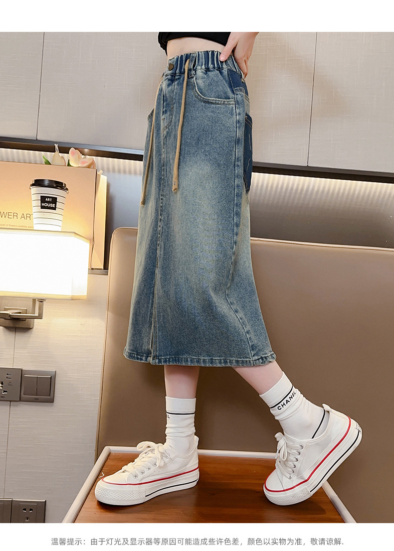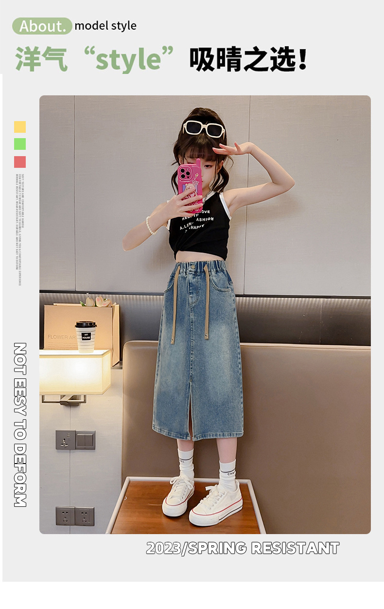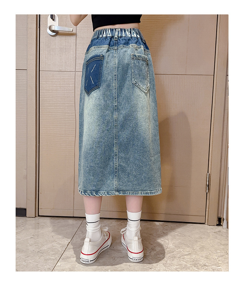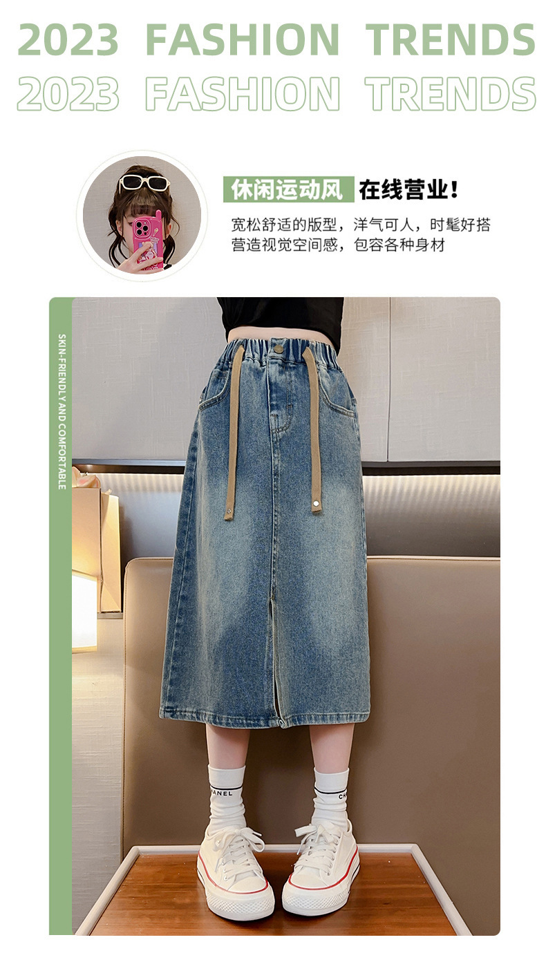대외 무역 아동 스커트 2025 여아 데님 스커트, 중대형 아동 롱 스커트, 아동 패션 슬릿 스커트, 아동복 트렌드스토어 가기