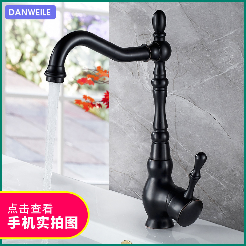 국경 간 상품 구리 검은 식물성 분지 수도꼭지 주방 싱크대 뜨겁고 차가운 식물성 분지 세라믹 코어 혼합 물 분지 수도꼭지스토어 가기
