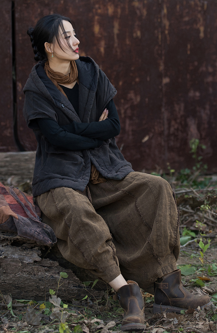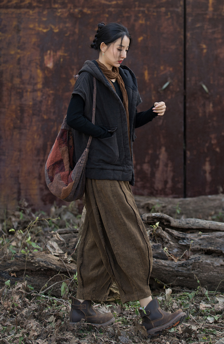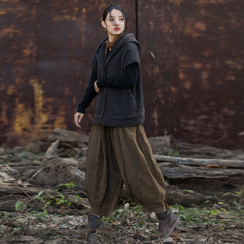 24 겨울 면 및 린넨 여성 의류 오리지널 새 스타일 퀼트 두꺼운 따뜻한 모시 튀김 색상 오래된 문학 및 예술 다목적 여성 조끼