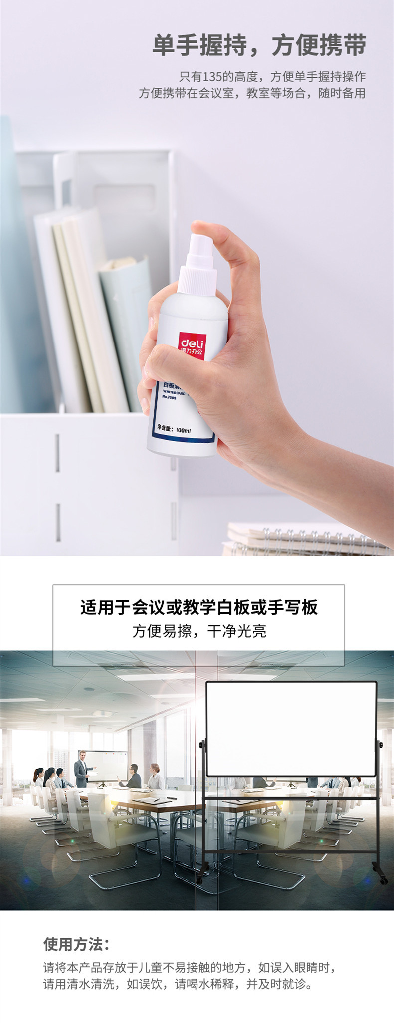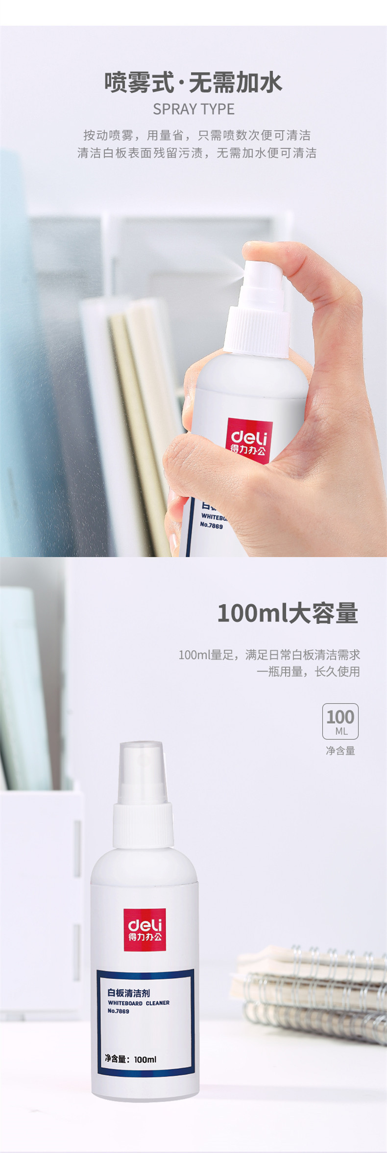 델리 7869 화이트 보드 클리너 사무실 교육 스프레이 화이트 보드 클리너 지우기 쉬운 필기 청소 화이트 보드 펜