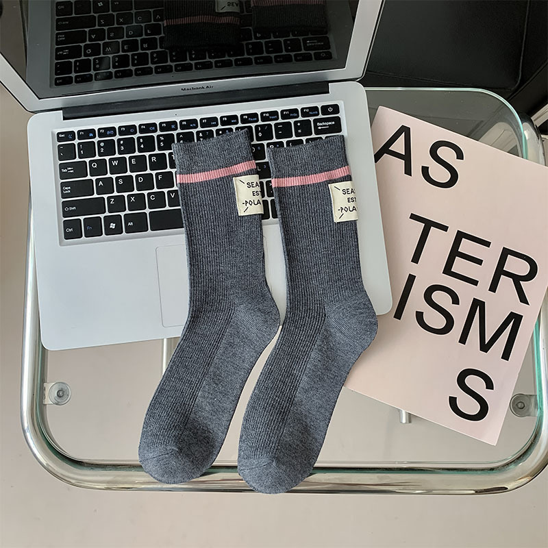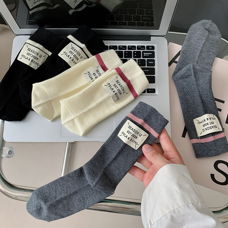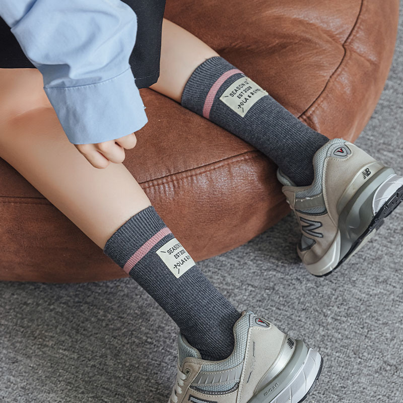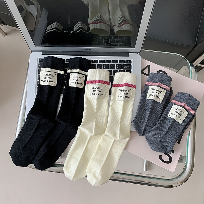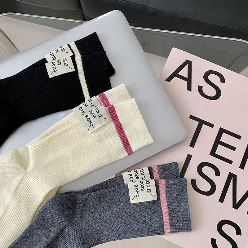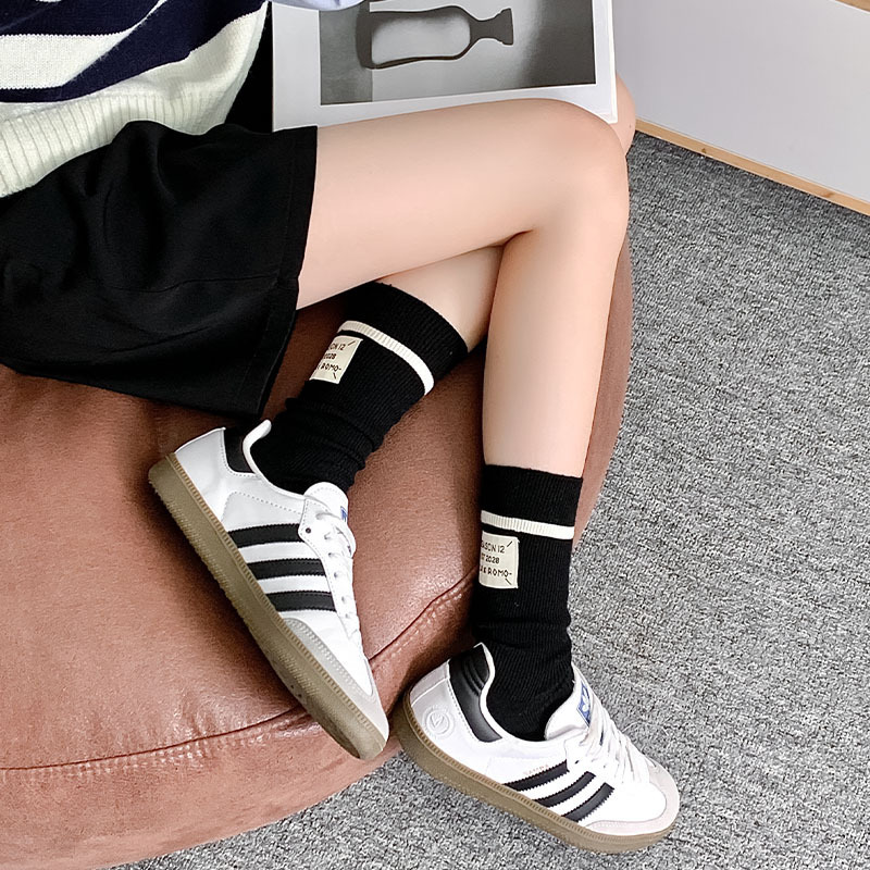 일본식 대학 스타일 독특한 천 라벨 스태킹 양말 여성의 가을과 겨울 두꺼운 따뜻한 겉옷을 입고 유행 울 중간 길이 양말스토어 가기