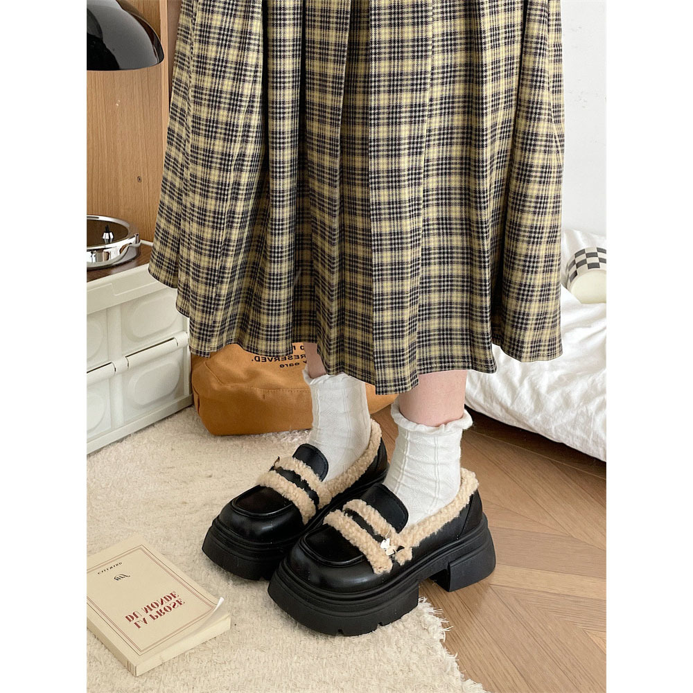 영국 스타일 레트로 러브 슈즈 2023 가을과 겨울을 위한 여성용 따뜻한 슬립온 코튼 슈즈스토어 가기