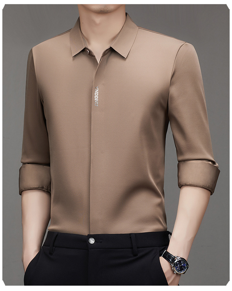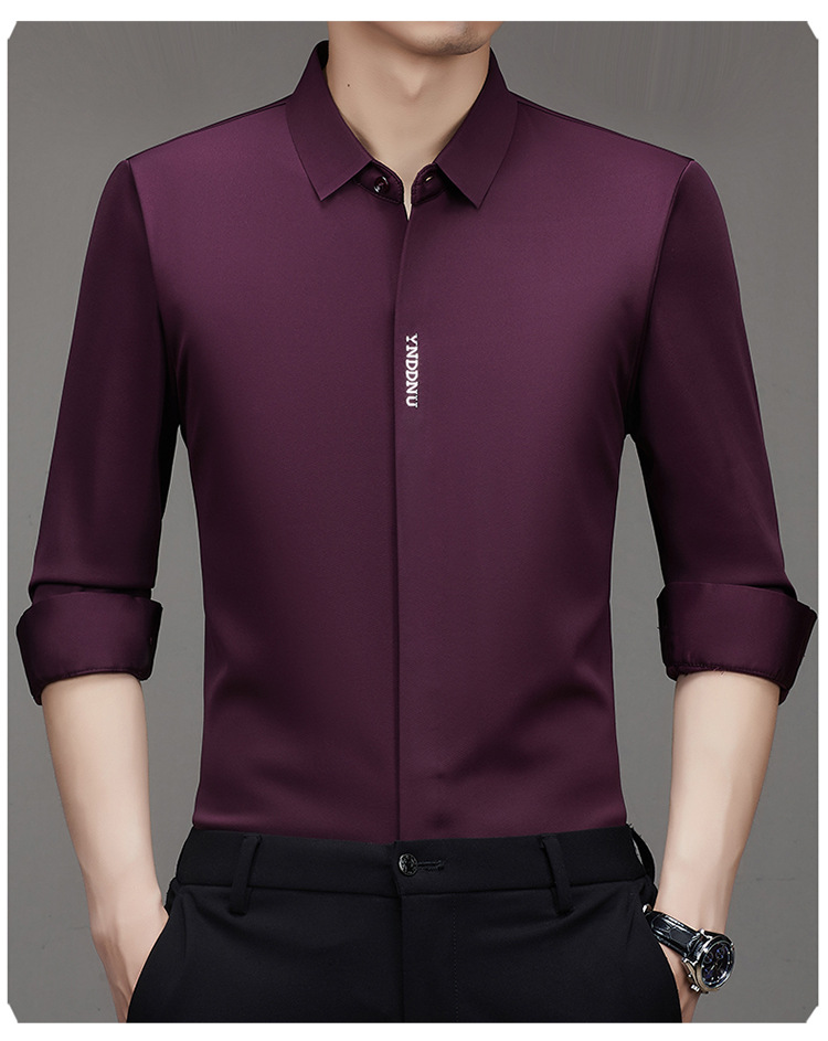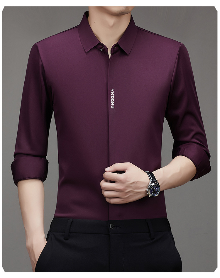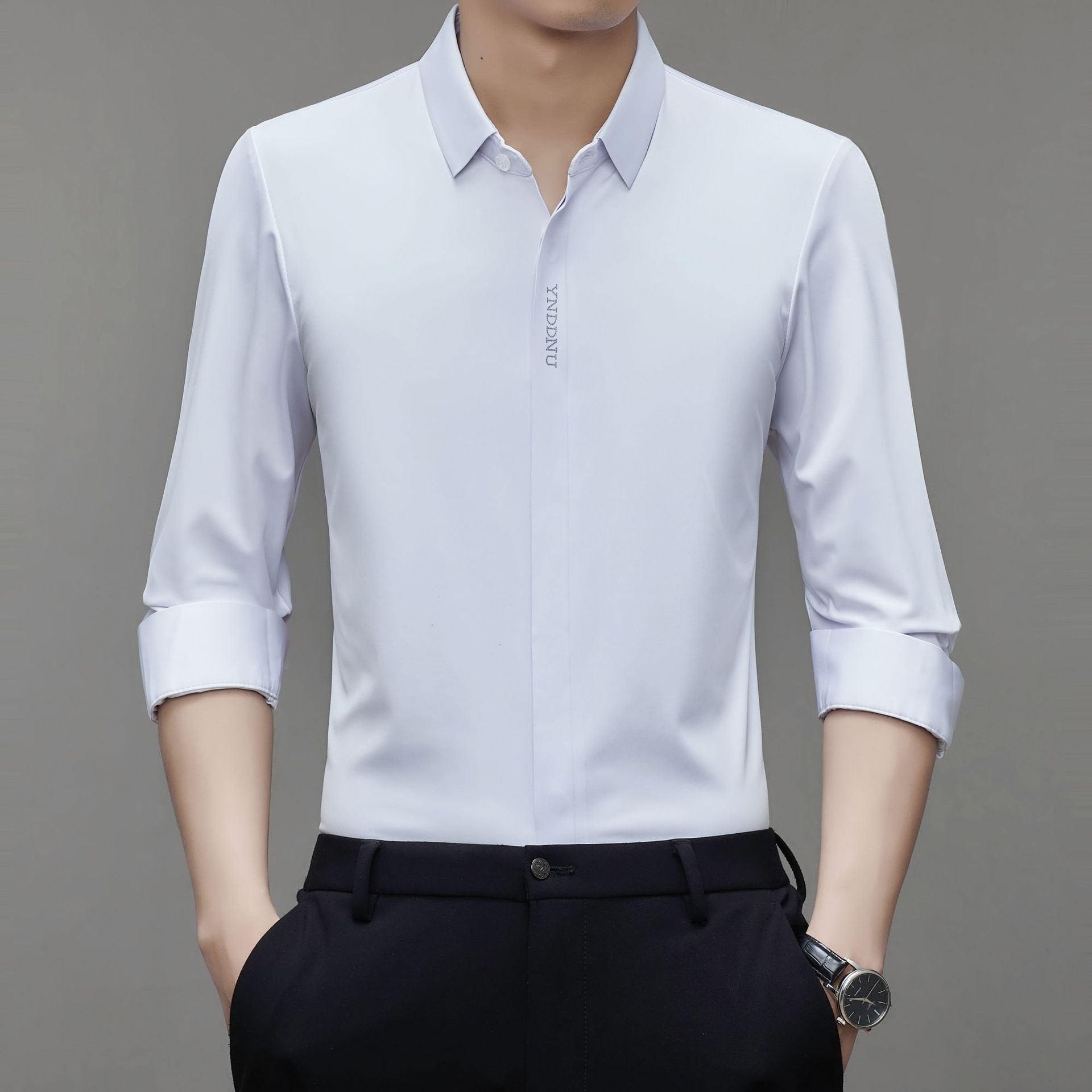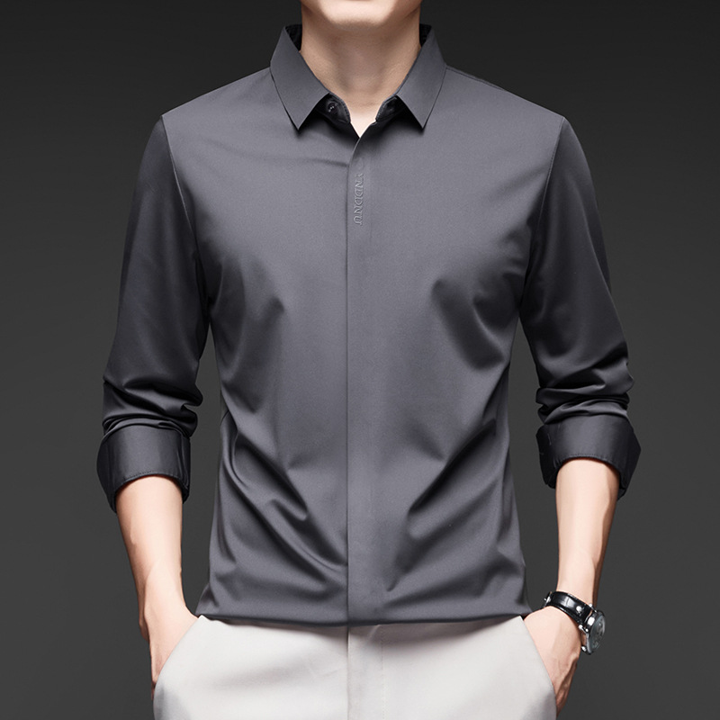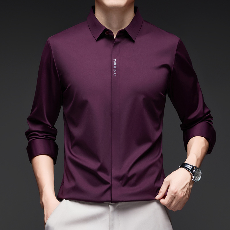 고급 남성용 긴팔 셔츠 남성 가을 새로운 원활한 비 다림질 흰색 비즈니스 고급 셔츠 남성 도매