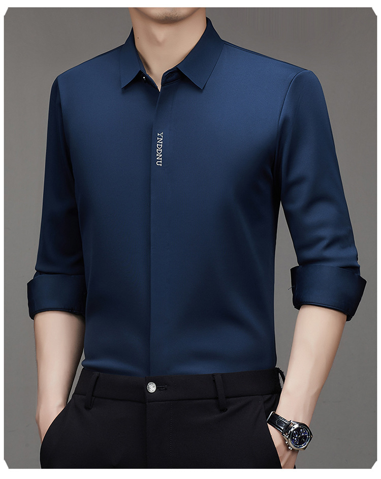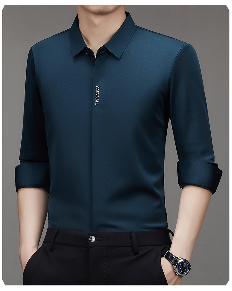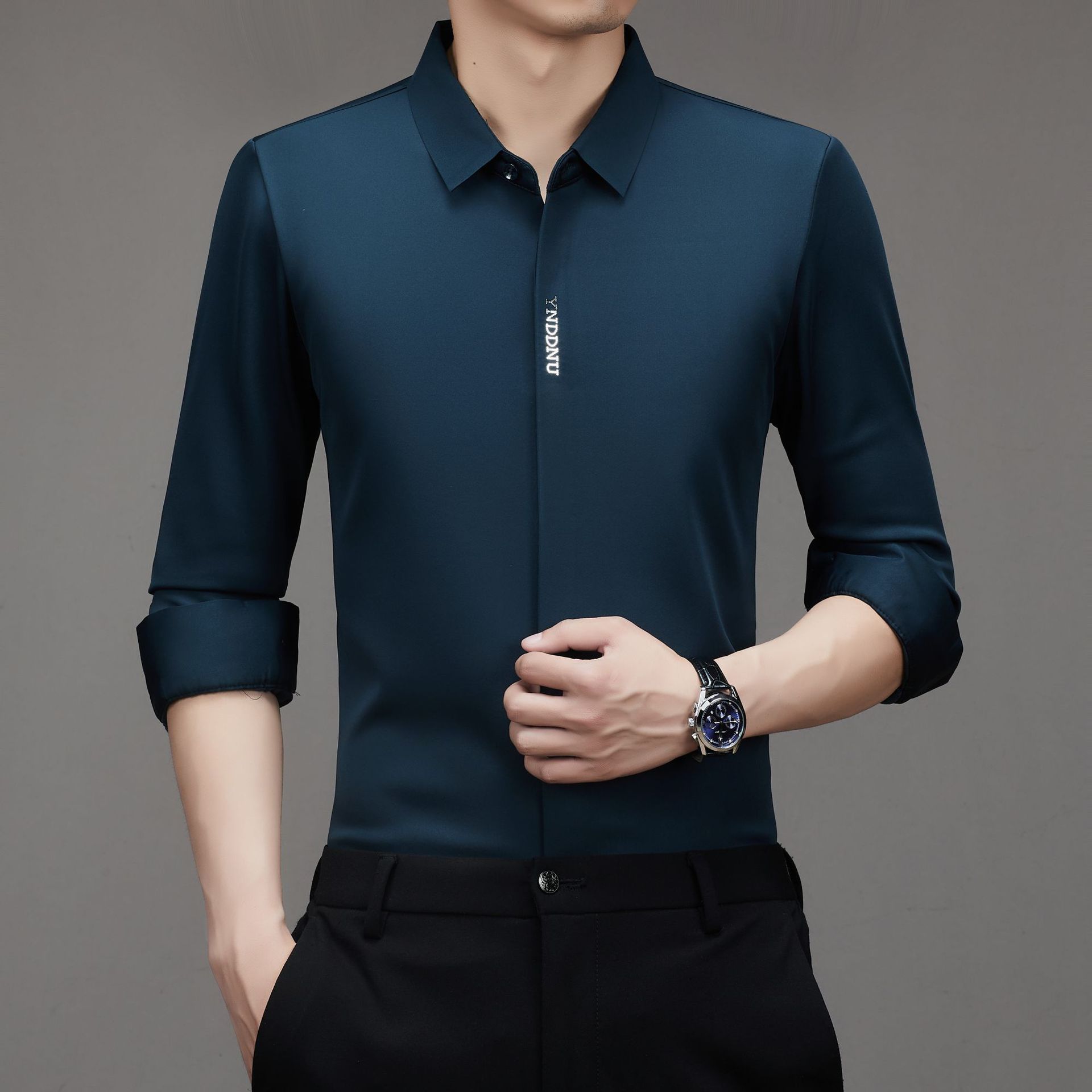 고급 남성용 긴팔 셔츠 남성 가을 새로운 원활한 비 다림질 흰색 비즈니스 고급 셔츠 남성 도매스토어 가기