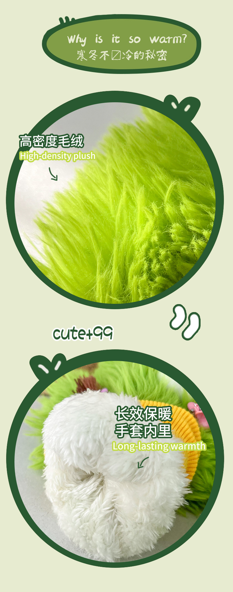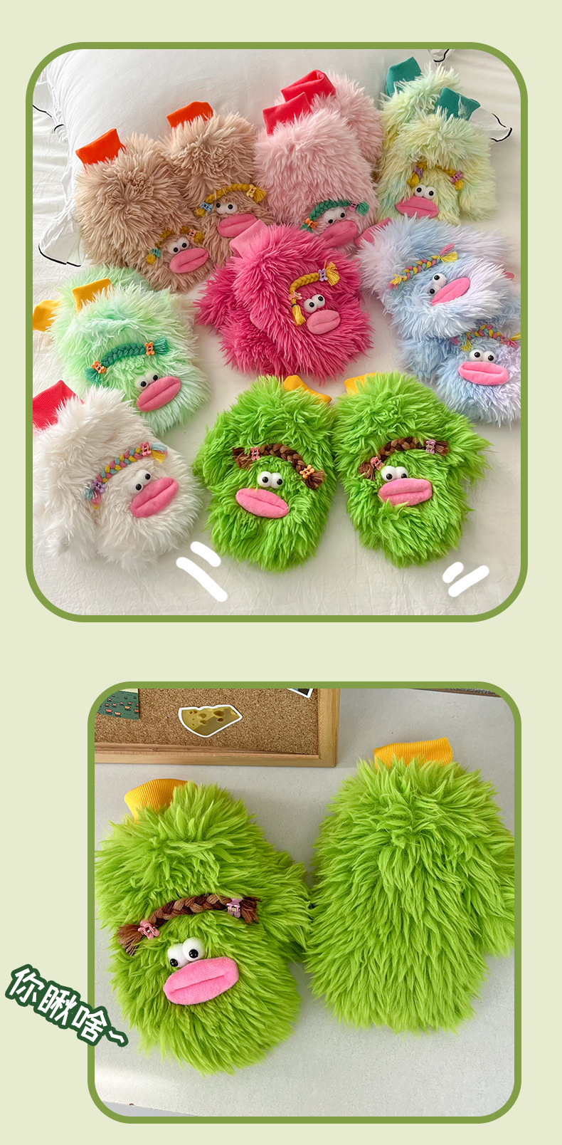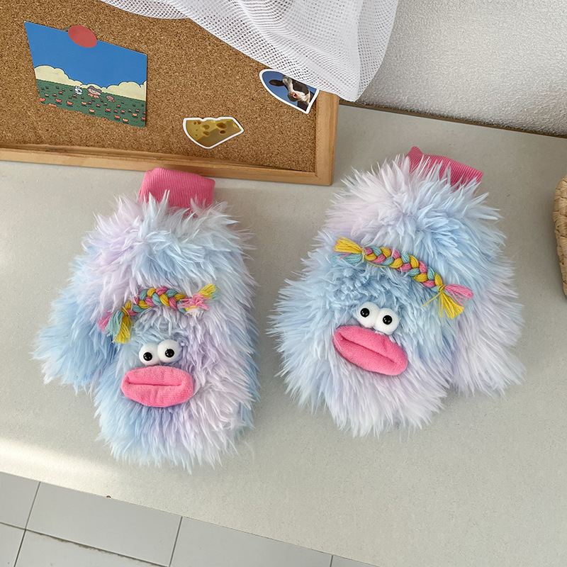만화 귀여운 성격 재미있는 소시지 입 장갑 가을과 겨울 봉제 방한 따뜻한 틈새 신선한 장갑스토어 가기