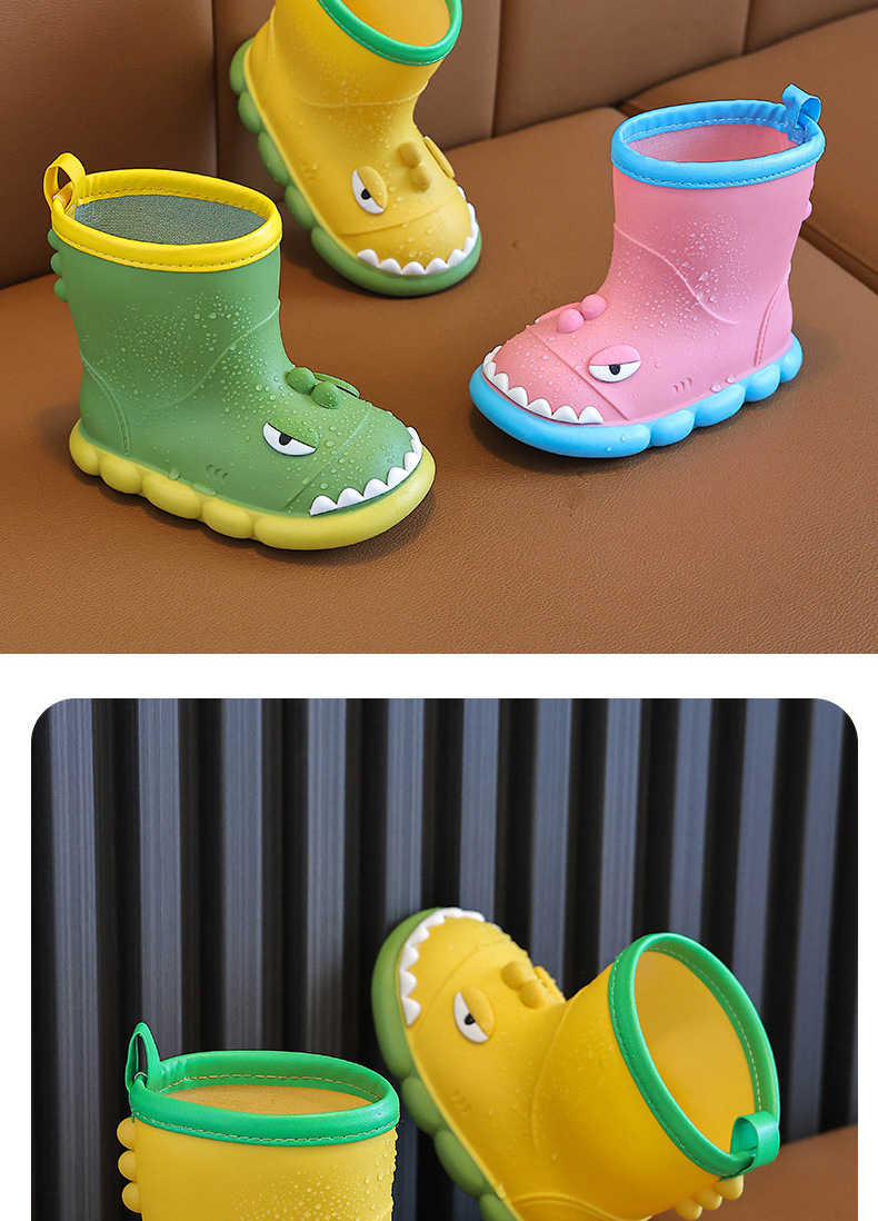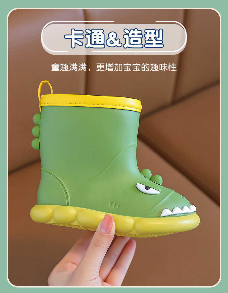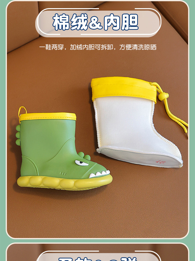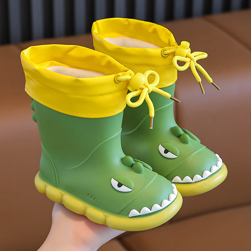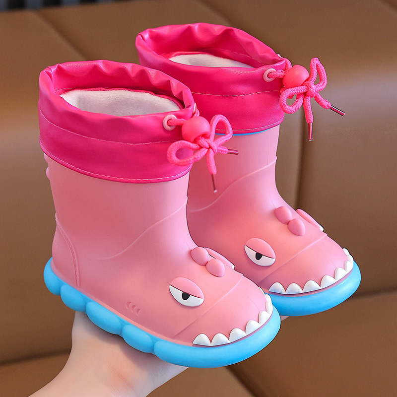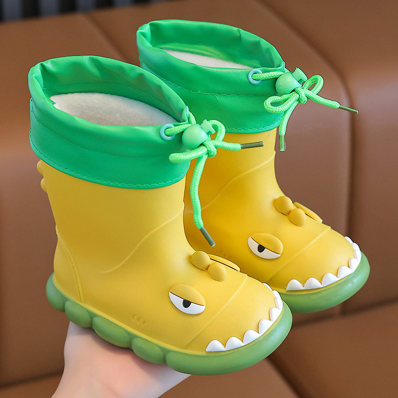 새로운 만화 작은 공룡 어린이 비 신발 어린이 면 만화 미끄럼 방지 따뜻한 야외 물 신발 아기 어린이 비 신발