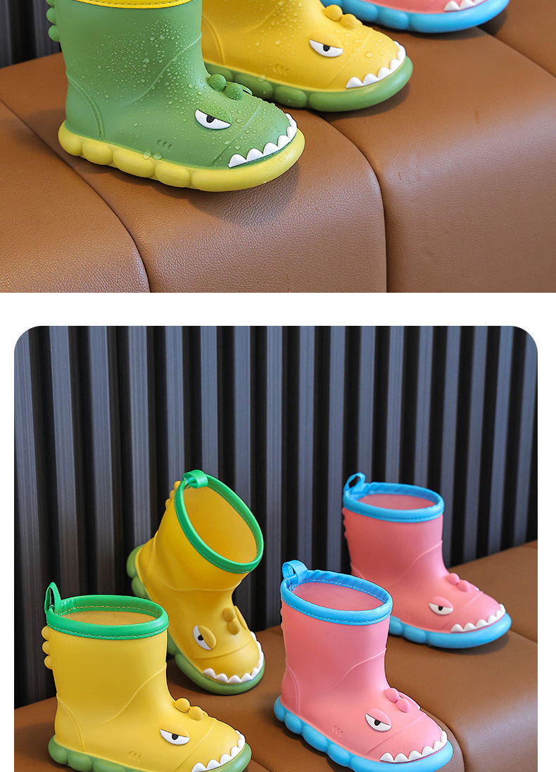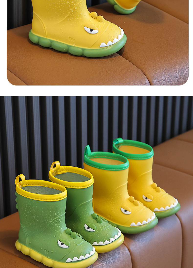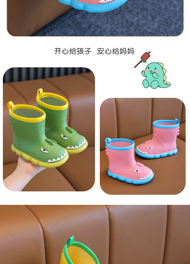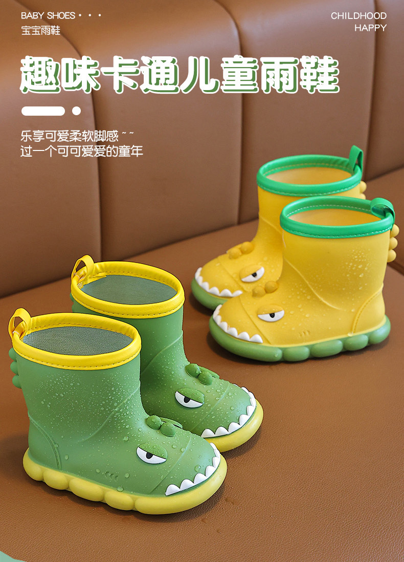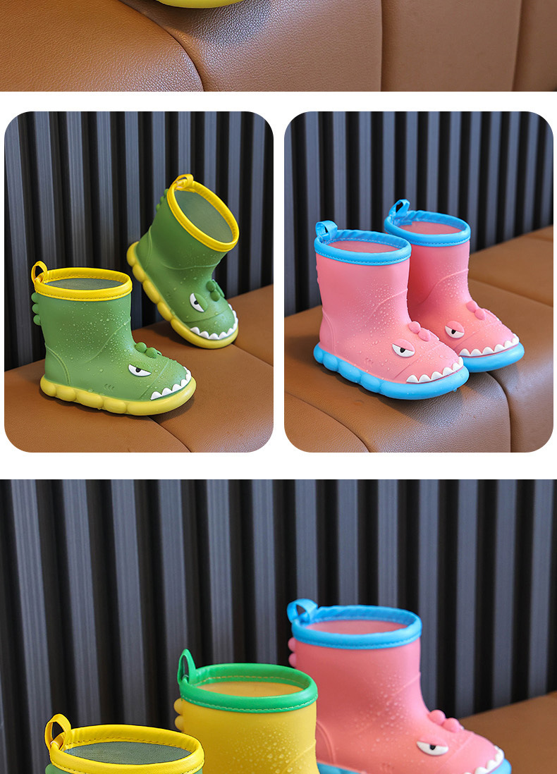 새로운 만화 작은 공룡 어린이 비 신발 어린이 면 만화 미끄럼 방지 따뜻한 야외 물 신발 아기 어린이 비 신발