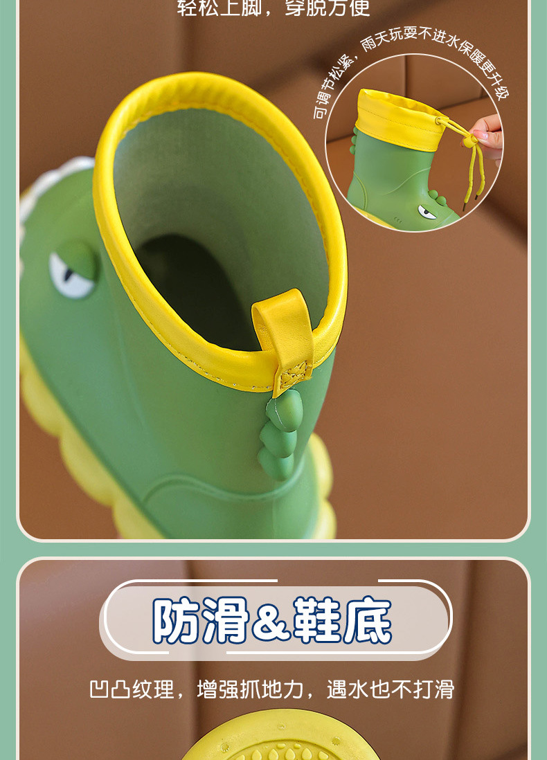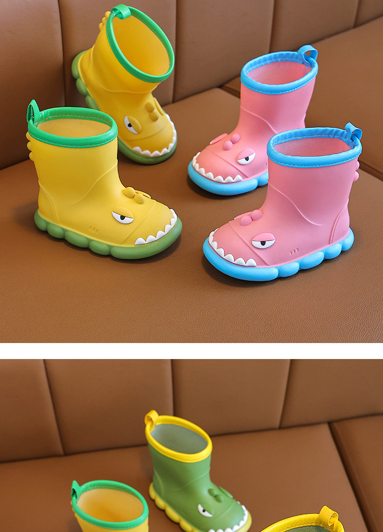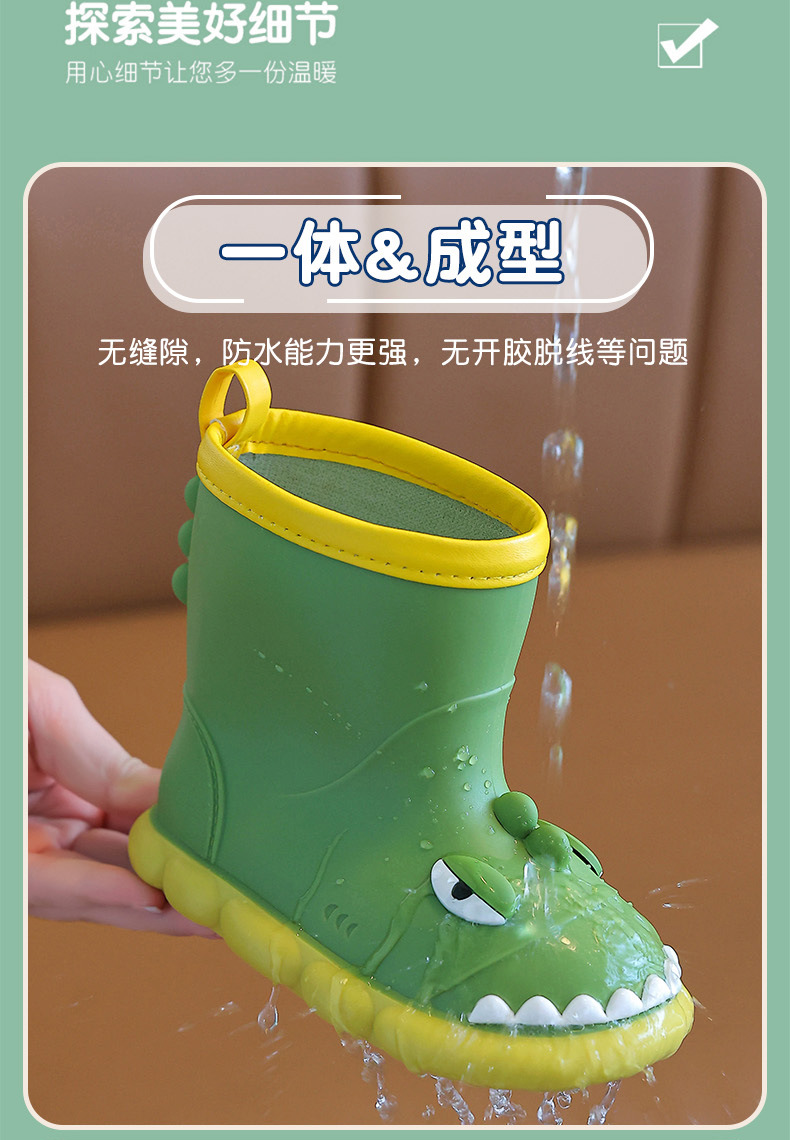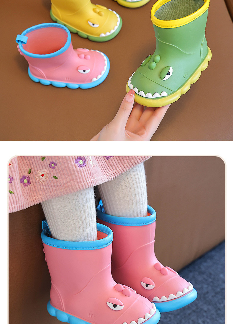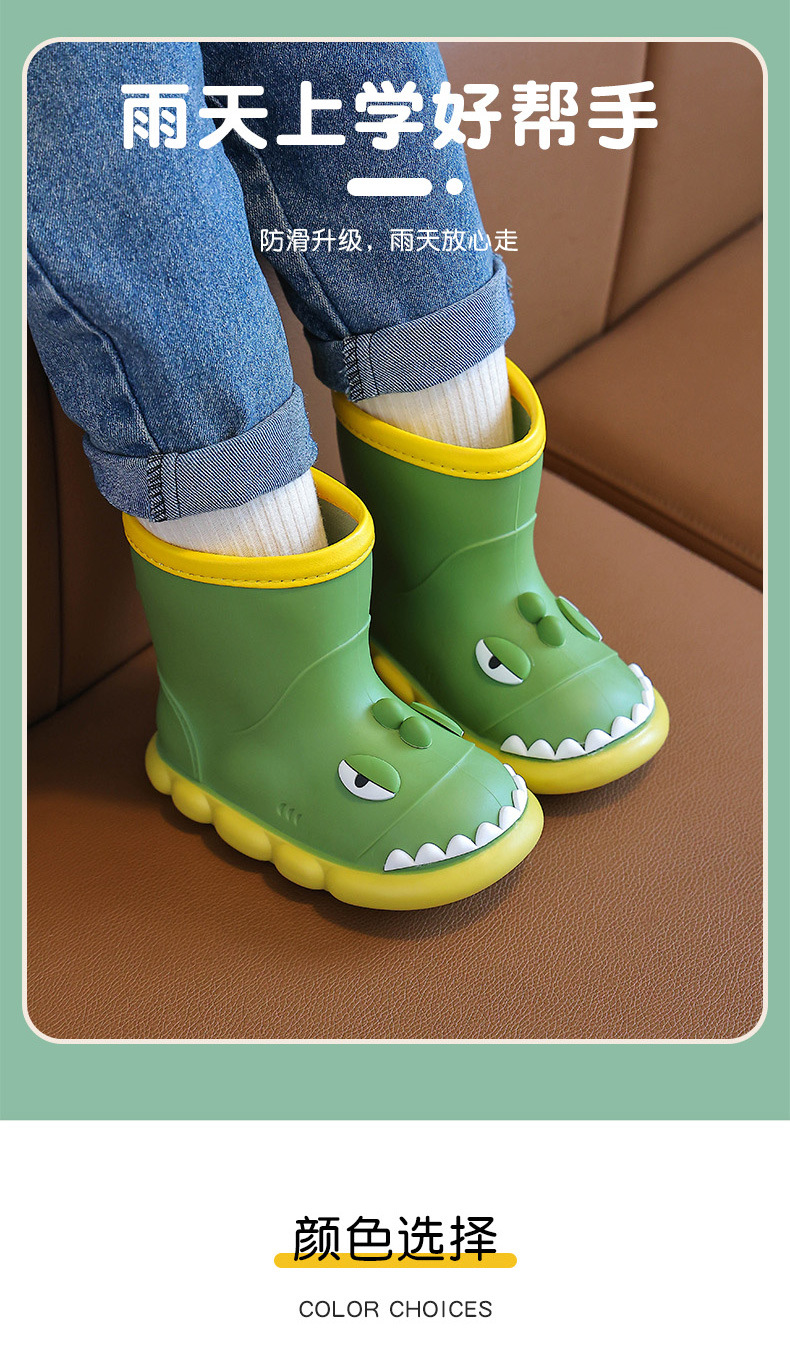 새로운 만화 작은 공룡 어린이 비 신발 어린이 면 만화 미끄럼 방지 따뜻한 야외 물 신발 아기 어린이 비 신발