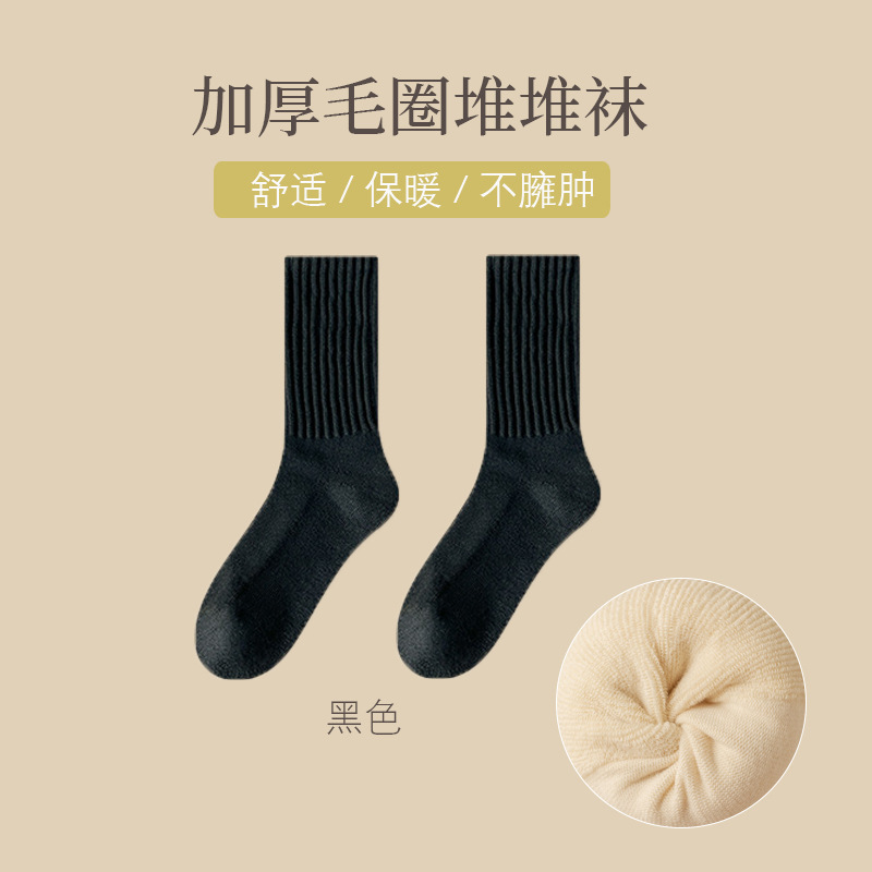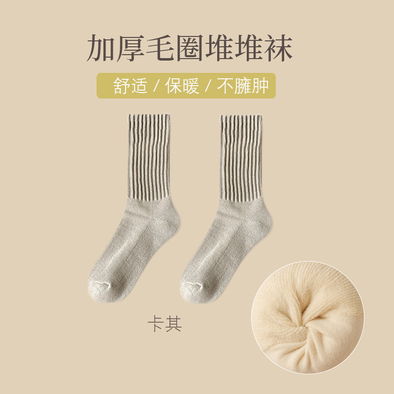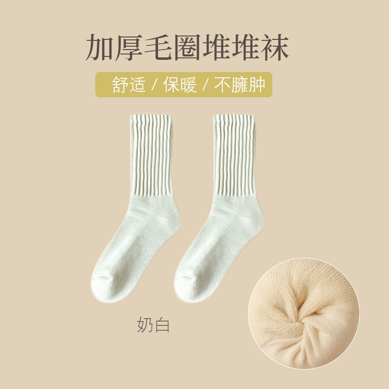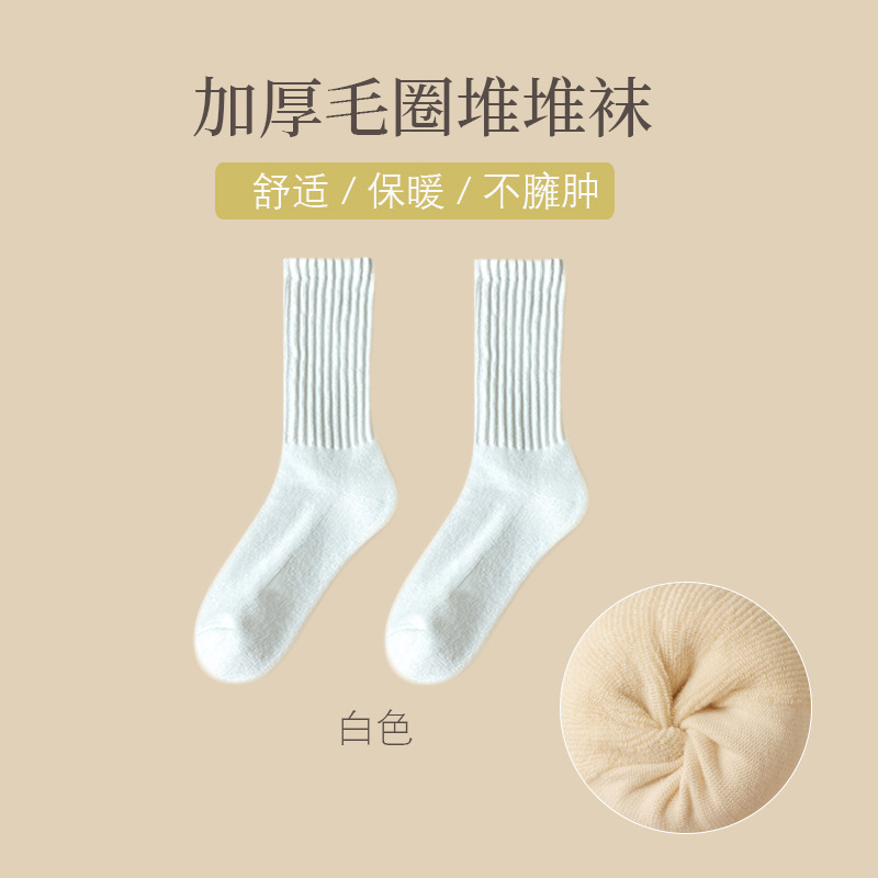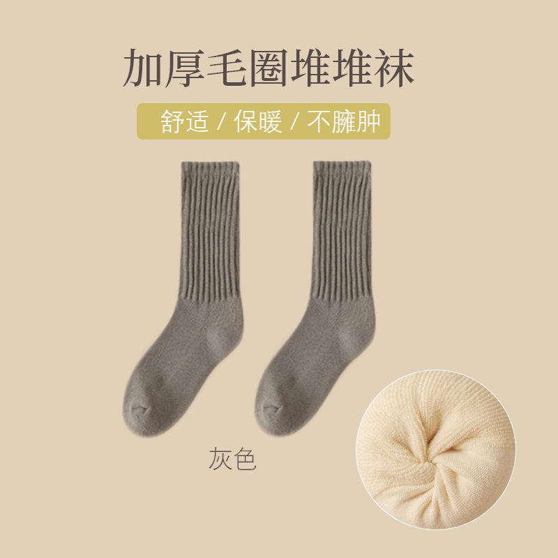 어린이 가을과 겨울 기모 두꺼운 따뜻한 테리 양말 단색 일본 미드 튜브 양말 두꺼운 바늘 수건 양말 조수스토어 가기