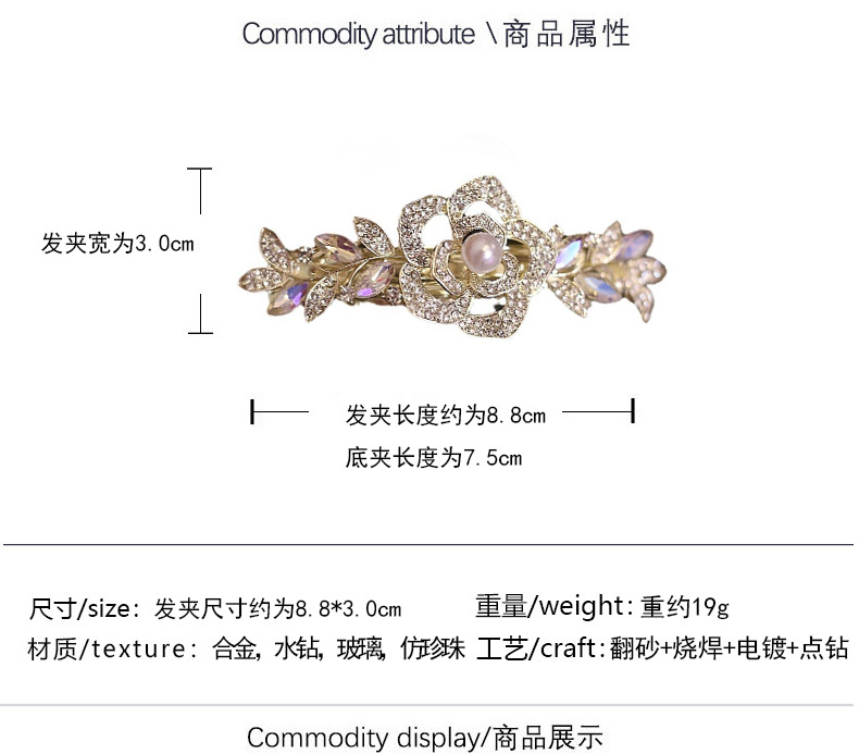 • 8.8cm-기질 카운트 동백 모조 다이아몬드 스프링 클립