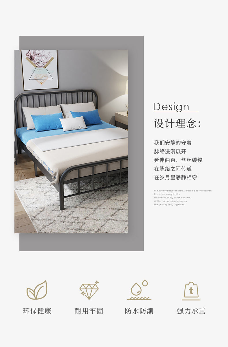 철제 침대 더블 침대 심플 모던 1.8 m 철제 침대 노르딕 1.5 렌탈 룸 철제 프레임 1.0m 싱글 어린이 침대