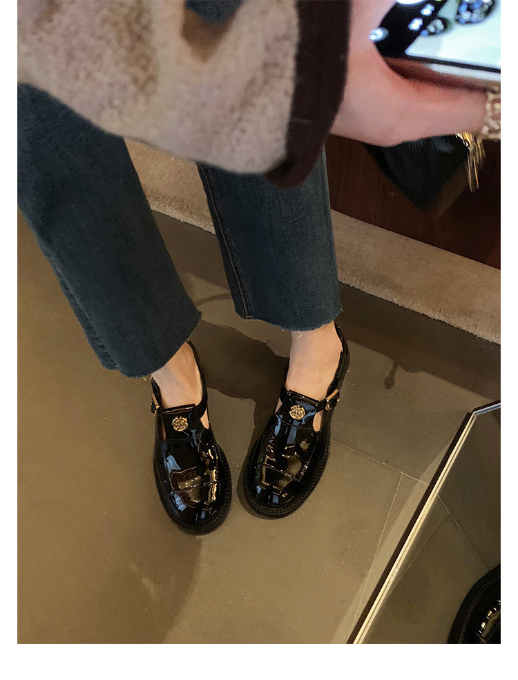 재고 포도 엄마 우아한 동백 라운드 헤드 버클 두꺼운 굽 두꺼운 바닥 높이 증가 메리 제인 여성용 가죽 신발스토어 가기