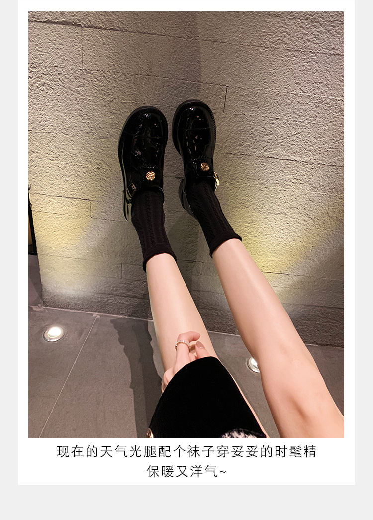 재고 포도 엄마 우아한 동백 라운드 헤드 버클 두꺼운 굽 두꺼운 바닥 높이 증가 메리 제인 여성용 가죽 신발