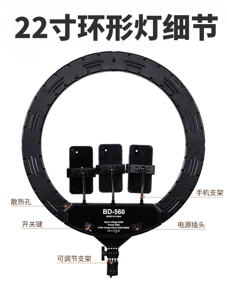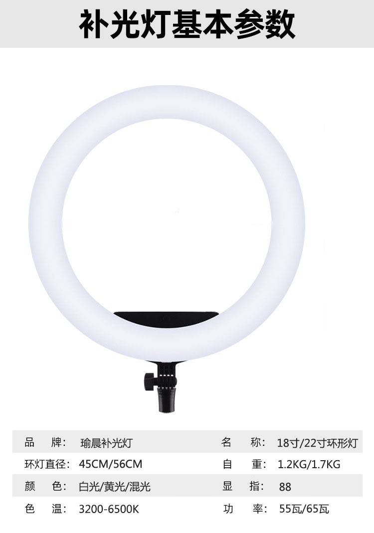 18 인치 라이브 라이트 앵커 뷰티 조명 조명 라이트 셀카 LED 링 라이트 사진 휴대 전화 브래킷 바닥