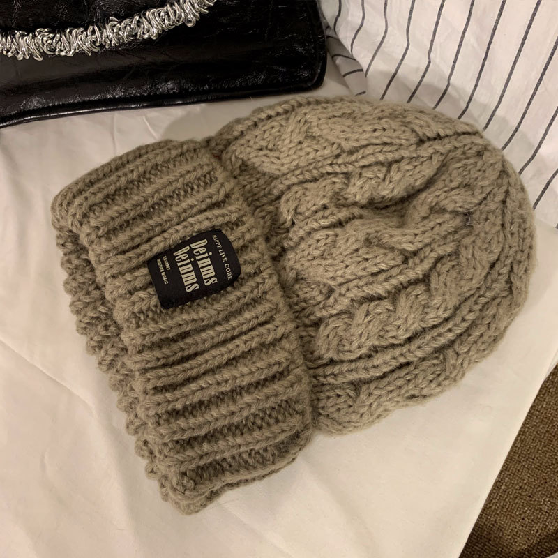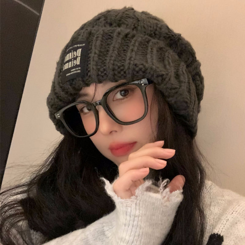 머리 둘레가 큰 여성용 회색 모직 모자 2024 새로운 루즈한 니트 모자로 얼굴이 작아 보이는 가을 겨울 방한 모자 트렌드스토어 가기