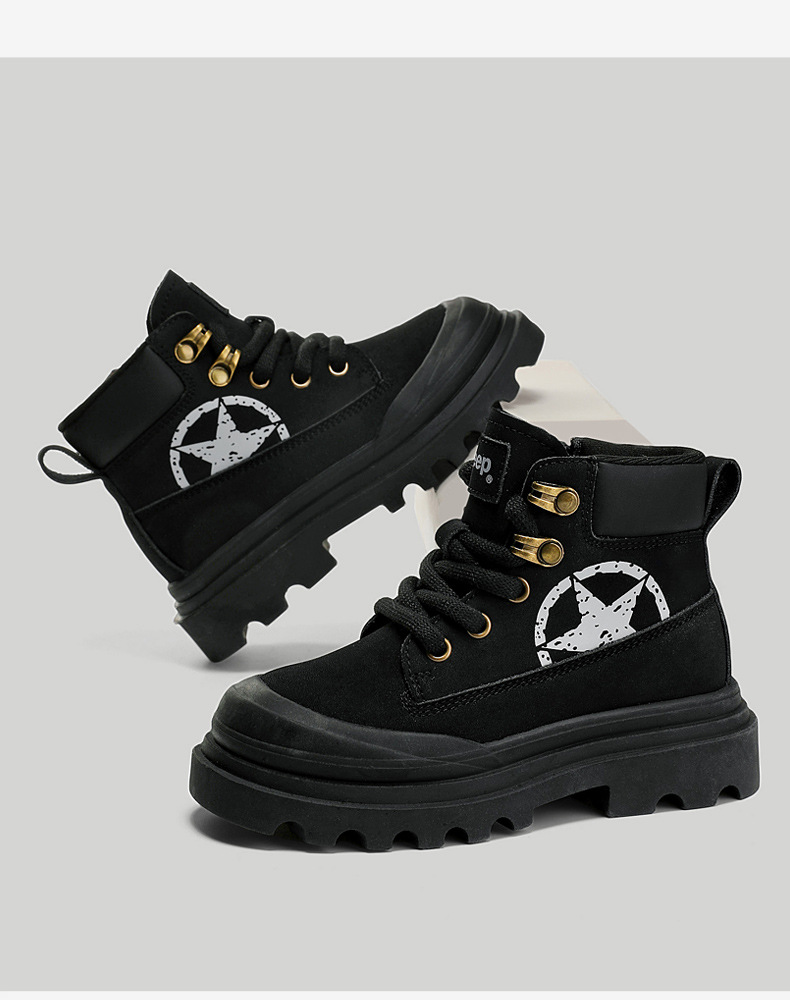 지프 어린이 부츠 마틴 부츠 소녀 영국 스타일 대황 부츠 소년 봄과 가을 방수 가죽 부츠 작업복 발목 부츠