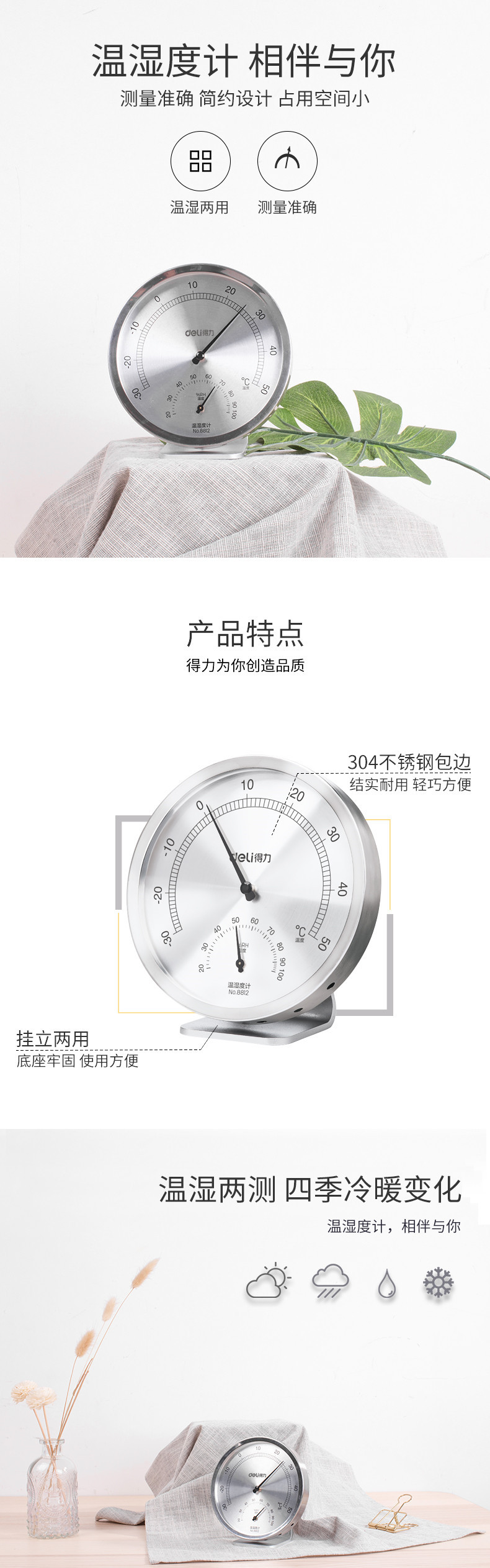 델리 8812 온도 및 습도 측정기 고정밀 실내 걸이 및 스탠딩 베이비 룸 레스토랑 공장 온실 온도계