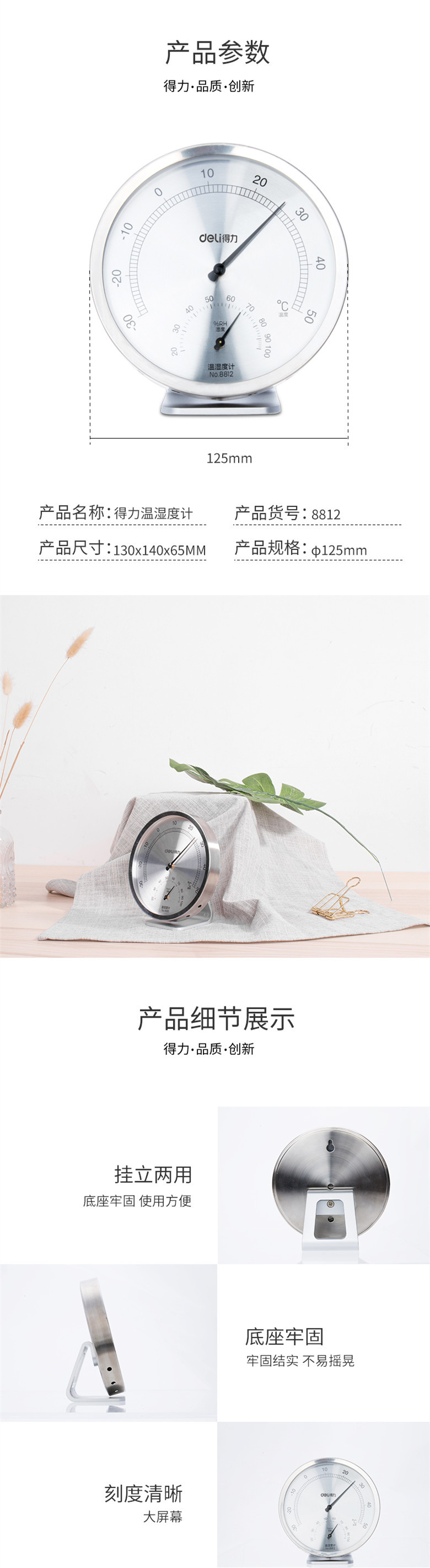 델리 8812 온도 및 습도 측정기 고정밀 실내 걸이 및 스탠딩 베이비 룸 레스토랑 공장 온실 온도계스토어 가기