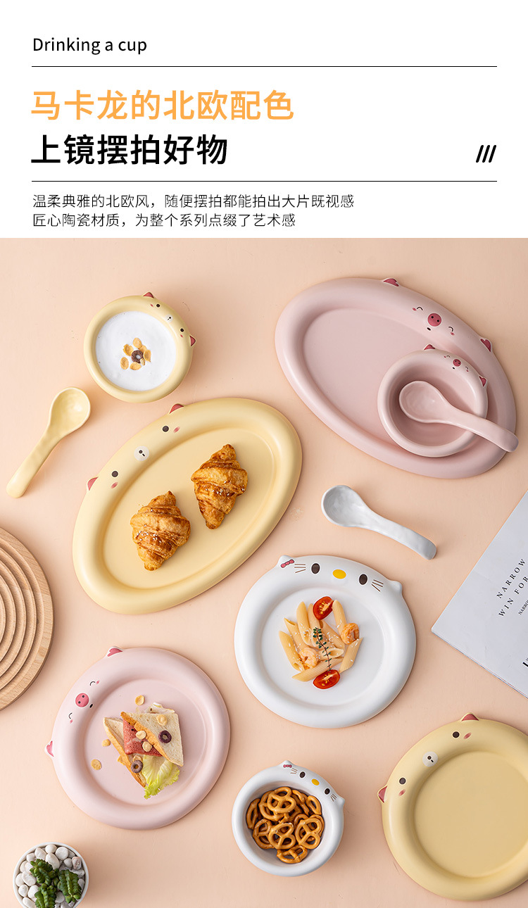 어린이 디너 플레이트 크리 에이 티브 새끼 고양이 귀여운 만화 아기 식기 기능 인터넷 연예인 접시 가정용 1 인 아침 식사 접시스토어 가기